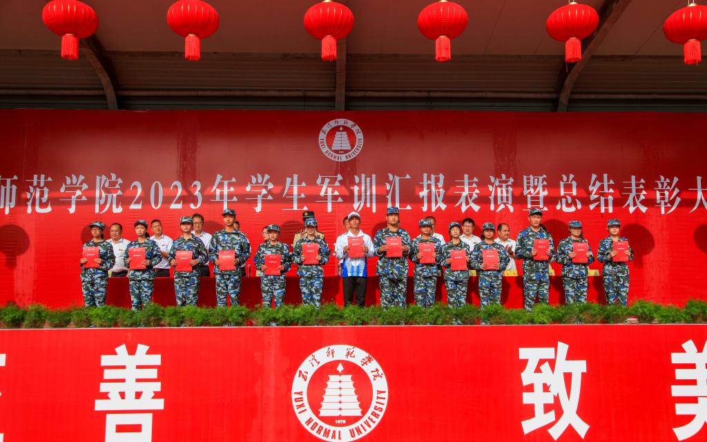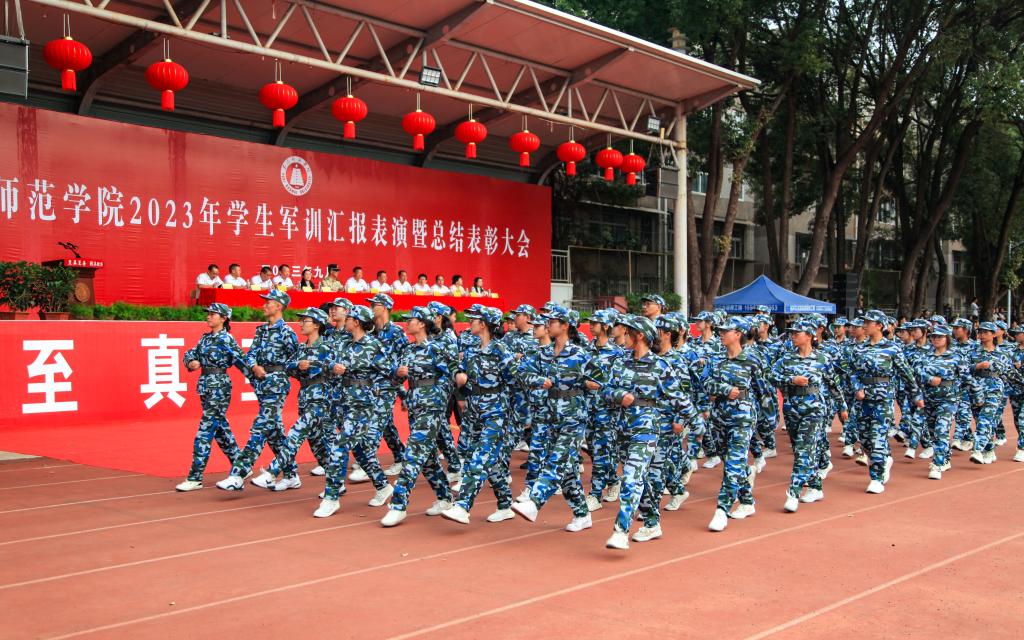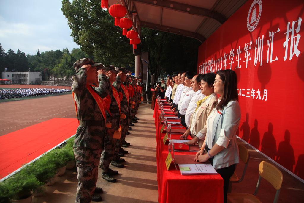 9月12日上午,玉溪师范学院举行2023年学生军训汇报表演暨总结表彰大会。学校领导,各部门、学院负责人,高职学院、体职学院执行院长,承训单位领导等出席活动,学校武装部部长张春霞主持。