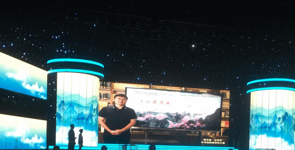 第五届“云岭杯”中华经典诵写讲大赛· 讲解大赛教师组一等奖获奖者廖鹏飞老师受邀作为大学教师组代表到现场领奖,获奖作品《春江花月夜》视频片段在现场播放。