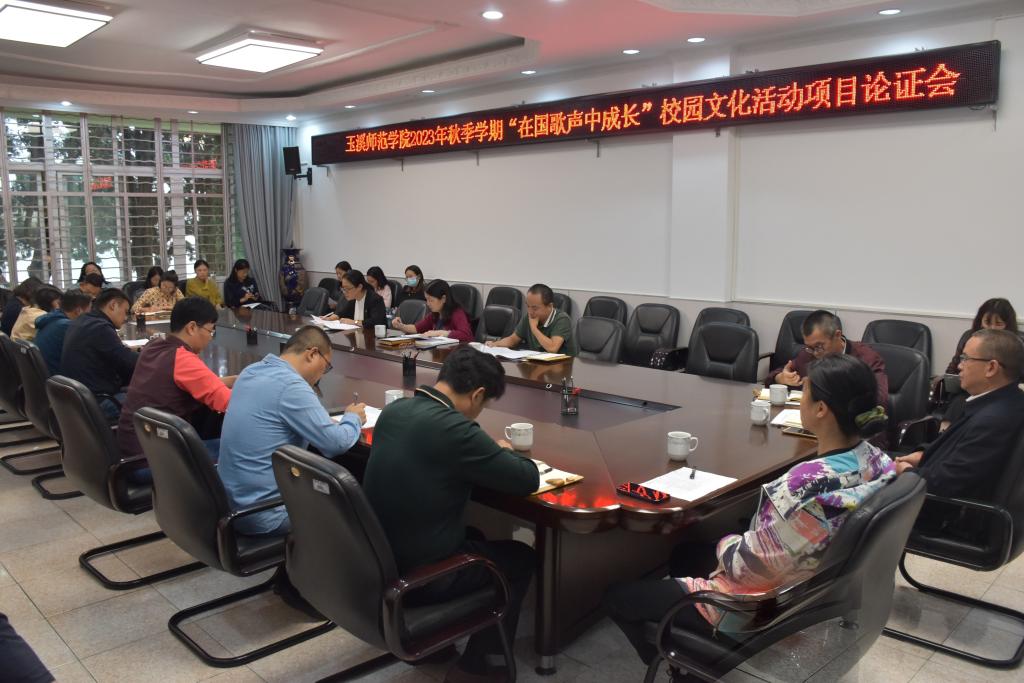 为给本科教育教学审核评估工作提供保障和支撑,提升第二课堂育人质量,有效服务学校高素质应用型人才培养目标,10月7日下午,玉溪师范学院在一办一楼会议室召开2023年秋季学期“在国歌声中成长”校园文化活动项目论证会。校党委副书记杨光,各二级学院党委副书记,高等职业技术学院执行院长,校团委专职团干,各学院总辅导员、团委书记参加会议。