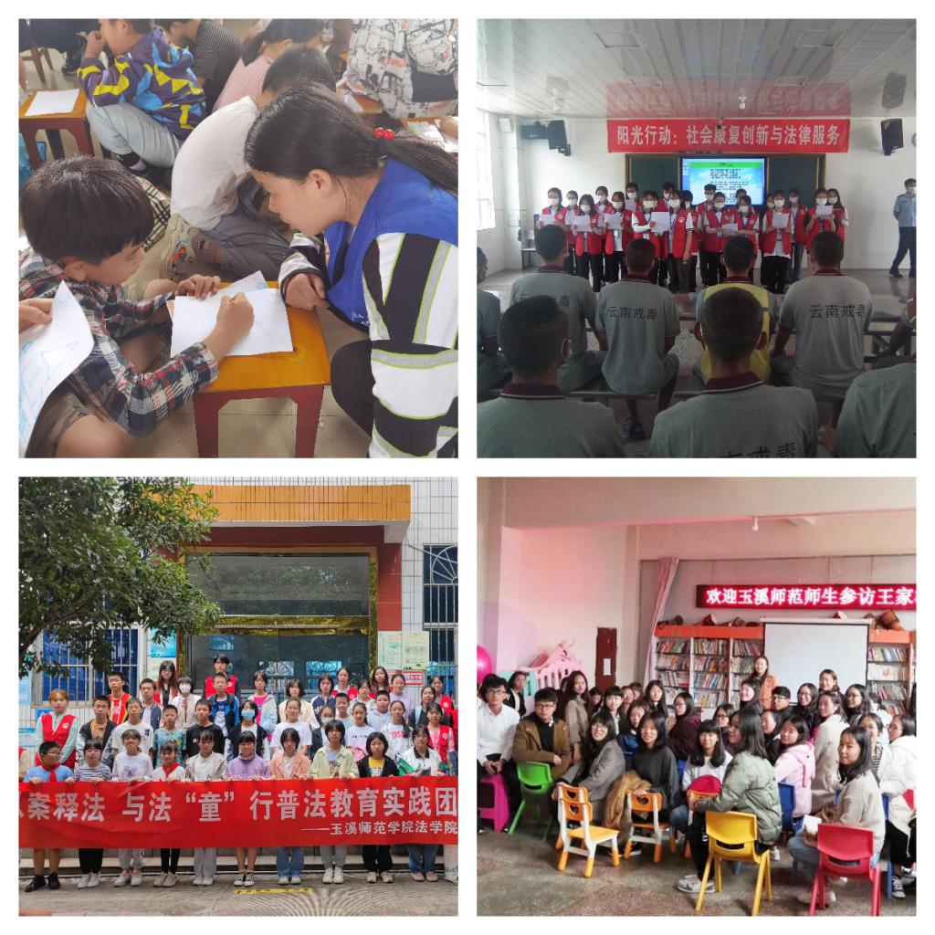 在服务实践中,法学院带领学生深入社区举办公开的模拟庭审,为公众提供法律援助和普及法律知识。公众可以通过观摩甚至是体验模拟庭审来加深对法律程序和司法体系的理解,有助于促进公众法律素养的提升,也展现了法学院积极履行社会责任的担当精神。而社会工作在司法实践中的作用贯穿始终,从庇护所服务到庭前调查,再到为受害者链接资源,社会工作者大有可为。社会各界对法学院开展的实践服务活动给予了高度评价,认可其积极回应社会需求、注重实践能力培养的努力和成果。近年来,法学院师生先后到大理、红河、曲靖、昆明、文山、昭通、景洪、普洱以及玉溪各区县,结合当地需求开展模拟法庭进社区48次,普法宣传、送法下乡110次,矛盾纠纷调解100余次;社会工作专业师生从2017年开始在玉溪的峨山、新平、华宁等地的农村社区开展儿童保护、性教育服务60余次,开展夏令营10个,服务儿童超过1500人,服务人次超7500人次。组织的三下乡服务团队连续三年获校团委“重点项目”立项,项目团队4次获优秀服务团队和优秀指导教师称号。学生结合专业特色凝练社会服务项目,获大学生互联网+创新创业大赛省级银奖1项、铜奖2项,求职模拟大赛省级二等奖,其他社会实践类省级奖励2项。