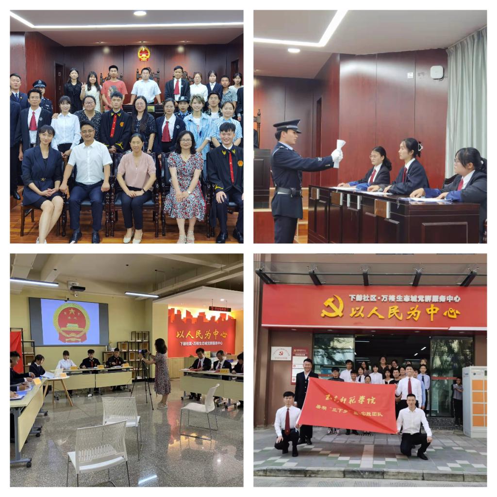 在课程建设方面,基于《模拟法庭演练》课程的法学、社工专业融合实践教育模式的探索与实践教学改革项目于2020年、2022年分别获校级教学成果二等奖。2023年,《模拟法庭演练》课程和《司法社会工作》课程分别被认定为校级“一流课程”及“课程思政示范课”。2022年10月,模拟法庭课程与马克思主义学院《思想道德与法治》课程进行了全面融合,在校内开展《中华人民共和国民法典》宣传模拟法庭演出20场次,服务校内2022级学生1000余人,使《中华人民共和国民法典》的校园宣传深入人心。