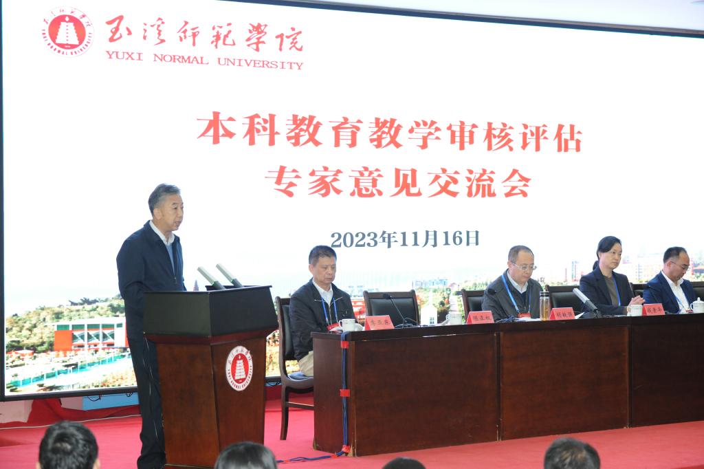 胡敏强代表专家组介绍线上、线下评估工作开展情况,围绕“办学方向与本科地位”“培养过程”“教学资源与利用”“教师队伍”“学生发展”“质量保障”等评估指标,集中反馈专家组对学校办学的总体印象和考察意见,指出学校办学的特色亮点、考察过程中发现的问题和不足、需要持续改进的方向和重点等,对玉溪师范学院本科教育教学工作提出中肯的意见建议。专家组成员依次反馈考察意见,指出现场考查过程中发现的不足并提出改进建议。