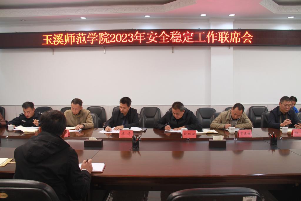 11月28日下午,玉溪师范学院在一办一楼会议室召开安全稳定工作联席会。玉溪市委网信办、玉溪市公安局及红塔山派出所相关领导、片区民警,玉溪师范学院党委副书记、校长段红云,党委委员、副校长李涛,各学院党委书记、相关职能部门负责人参加会议,会议由李涛主持。