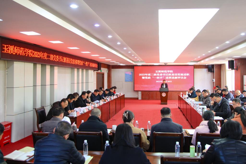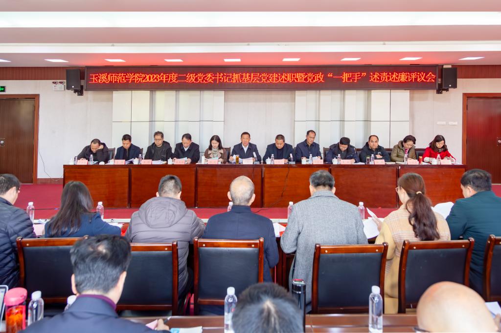 12月28日下午,玉溪师范学院在图书馆3003会议室召开2023年度二级党委书记抓基层党建述职暨党政“一把手”述责述廉评议会。学校党政领导班子成员,二级党委书记、院长,党委工作部门主要负责人,党务干部,党代表,教代会代表,民主党派代表等参加会议。会议由校党委书记姜家雄主持。