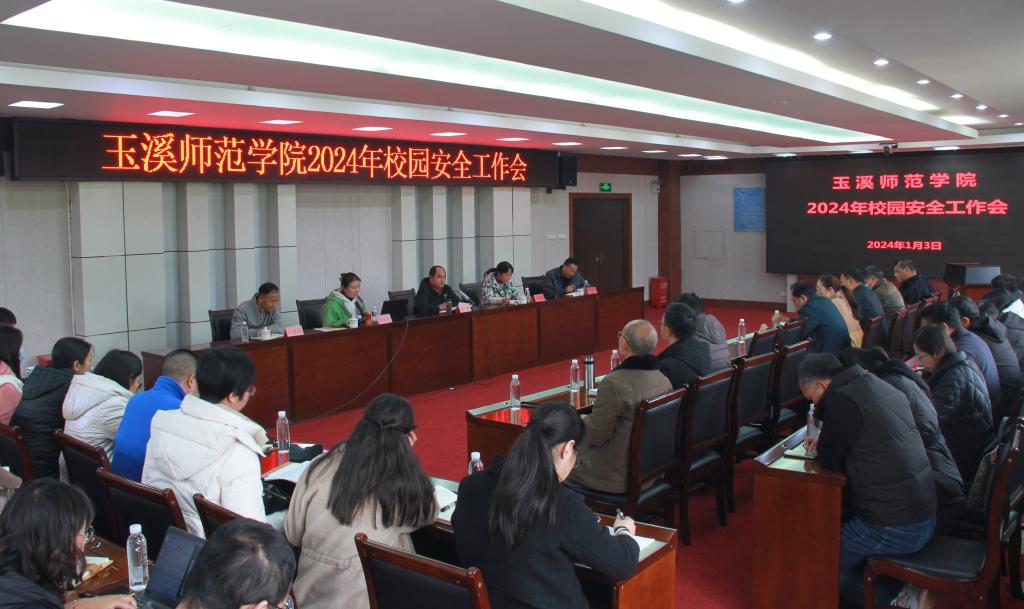 1月3日下午,玉溪师范学院在图书馆3003会议室召开2024年校园安全工作会,对做好岁末年初暨寒假校园安全防范工作进行安排。会议由副校长杨伟主持,各学院党委书记、副书记、辅导员,相关职能部门负责人等参加会议。