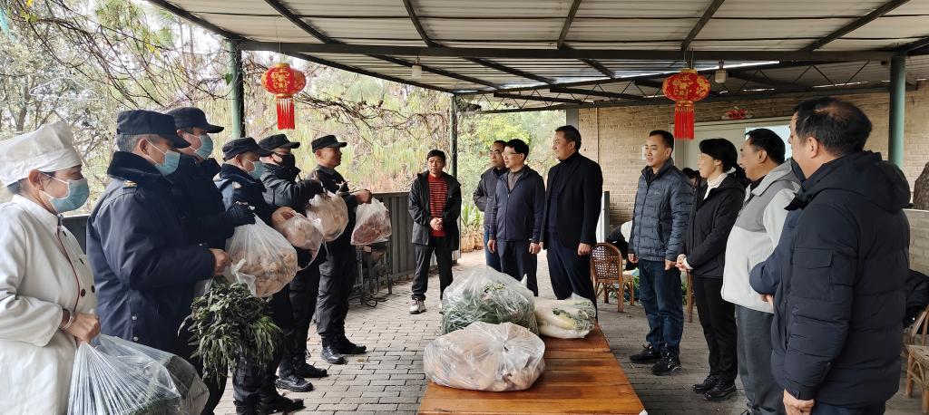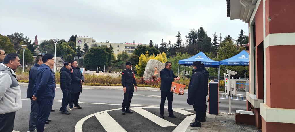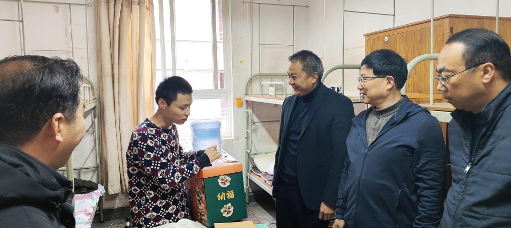 在龙年新春佳节即将来临之际,2月9日上午,玉溪师范学院校长段红云、副校长章新,带领办公室、保卫处、教务处、新闻中心、后勤服务中心、资产经营公司等部门相关负责人,看望慰问寒假春节留校学生和坚守岗位的教职员工,向他们致以新春的祝福,并实地检查校园安全工作。
