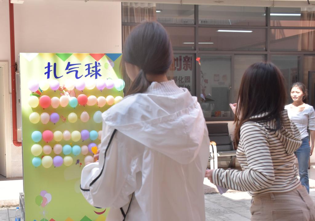 “发现美”女性摄影展将50幅用艺术语言表达女性思想和女性力量的优秀作品陈列展出;学生会堂循环播放女性力量短片,震撼心灵,引人深思;学生心理团体辅导活动在一楼小广场组织进行,心理健康教育咨询中心专业老师现场指导,与女生们一同完成自画像签到、丢飞机、飞镖扎气球、投壶、春日保龄球等活动,参与活动的女生们积极参与、兴致盎然、跃跃欲试,活动中笑声、喝彩声此起彼伏。同学们在活动中释放心灵,体验快乐,增进友谊,纾解压力。