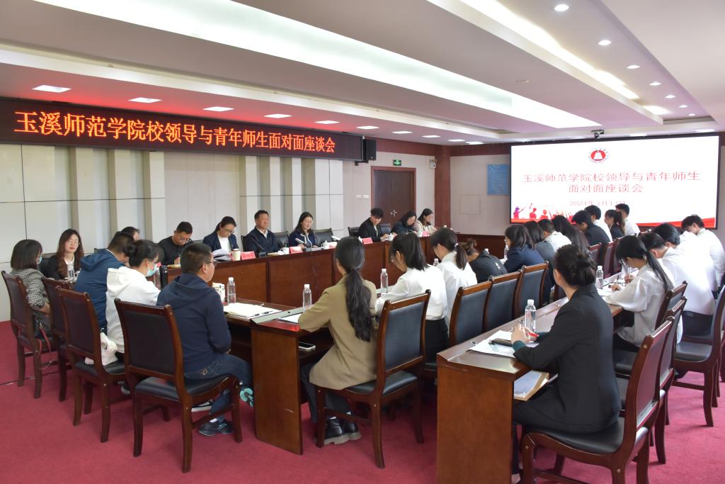 为推进学校内涵式高质量发展,进一步畅通青年师生意见反馈渠道,搭建学校与青年师生交流平台,广泛听取青年师生对学校建设发展的意见建议,3月13日,玉溪师范学院校领导与青年师生面对面座谈会在图书馆3003会议室召开。学校党委书记姜家雄、副书记杨光与青年师生代表、校团委专兼职团干部等40余人亲切座谈,共话成长。座谈会由校团委书记徐印芳主持。