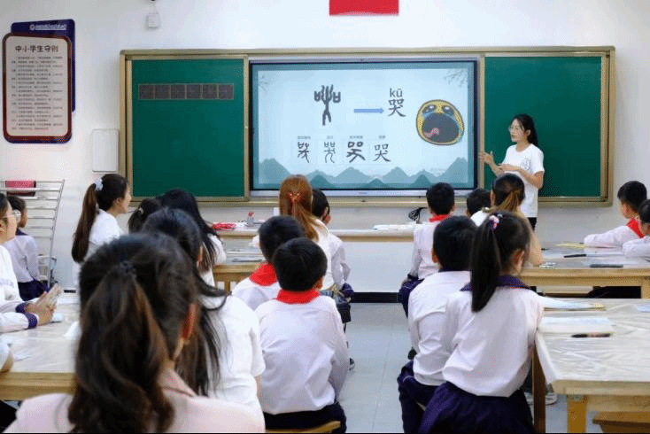 活动伊始,留学生与附小学生共同观看了国际中文日宣传片,理解语言对于传承文明、增进文明对话的重要价值。随后推普志愿者选取与心情有关的汉字,从造字法出发讲解字形、字义。图文并茂的讲解让在场的同学对造字法和汉字的特点有了更深入的了解,进一步体悟古人造字的智慧。