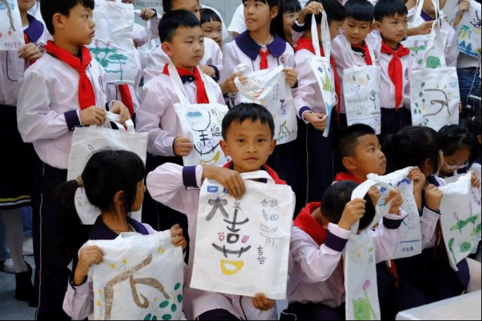 活动最后,志愿者带领在场留学生和小学生以彩绘方式将趣味汉字画在了帆布包上,将汉字的心灵密码带到生活中,促进中华优秀传统文化创造性转化与创新性发展。