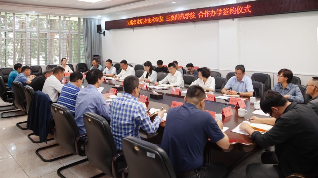 签约仪式在玉溪师范学院举行,由玉溪师范学院副校长章新主持。玉溪师范学院、玉溪农业职业技术学院相关职能部门负责人参加仪式。