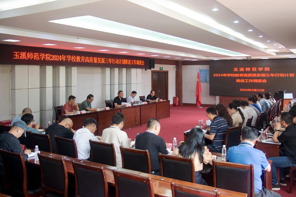 4月25日,玉溪师范学院召开2024年学校教育高质量发展三年行动计划推进工作调度会。校长段红云,副校长章新、李明、杨伟、李涛出席会议,职能部门、教学单位、教辅单位负责人参加会议。会议由章新主持。