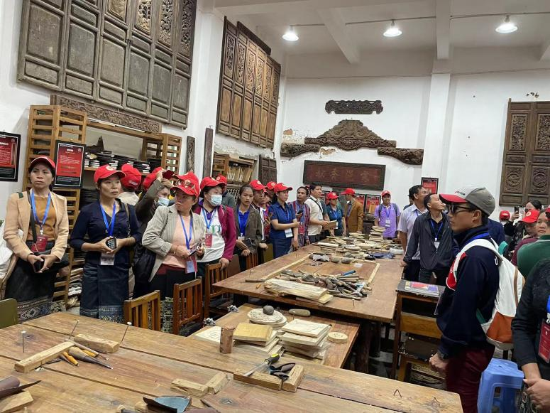 培训班一行110人分两批参观了学校湄公河次区域民族民间文化传习馆和教师教育学院智慧教室,并在教师教育学院书法教室开展了“玉剪美好”手工制作活动。老挝学员们成功地做出漂亮剪纸书签并不停用手机拍照留下在玉溪师范学院的美好瞬间。他们当中很多老师都表示未来有机会非常愿意来玉溪长期学习。