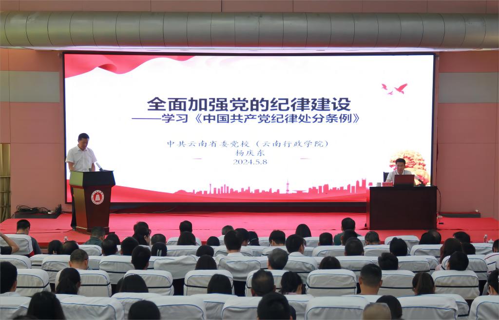 5月8日上午,玉溪师范学院举行党纪学习教育读书班暨党委理论学习中心组学习会,邀请中共云南省委党校(云南行政学院)杨庆东教授作专题辅导。学校党委委员、副处级及以上干部(含非实职)、全校教职工党员参加学习。学习会由校党委书记姜家雄主持。