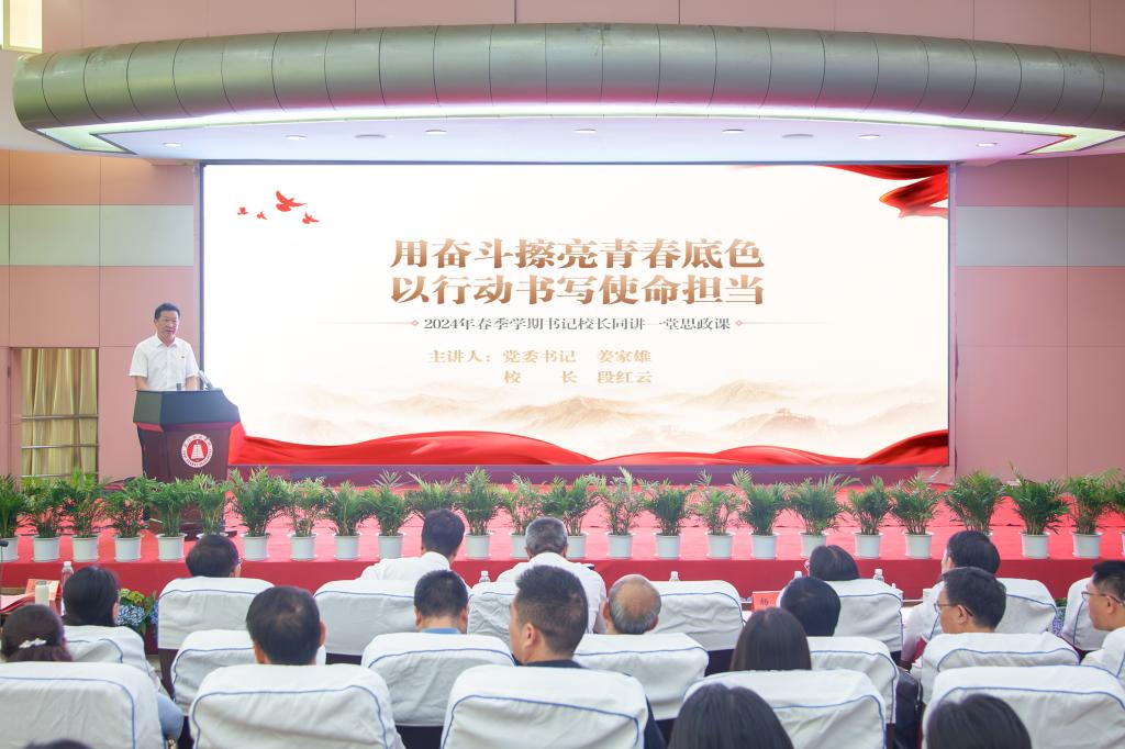 5月8日,玉溪师范学院2024年春季学期书记校长同讲一堂思政课在图书馆多元学术报告厅举行。校党委书记姜家雄,校党委副书记、校长段红云共同为师生讲授思政课。学校领导,职能部门负责人,二级党委书记、团委书记,高职学院执行院长,各学院学生代表400余人聆听了思政课。