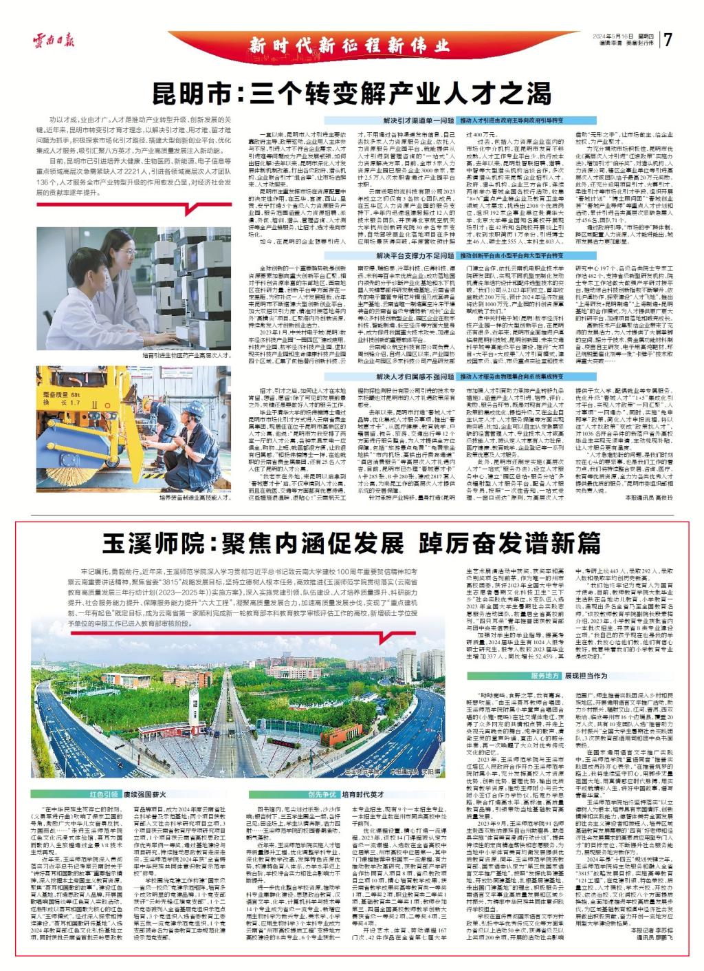 牢记嘱托,勇毅前行。近年来,玉溪师范学院深入学习贯彻习近平总书记致云南大学建校100周年重要贺信精神和考察云南重要讲话精神,聚焦省委“3815”战略发展目标,坚持立德树人根本任务,高效推进《玉溪师范学院贯彻落实〈云南省教育高质量发展三年行动计划(2023—2025年)〉实施方案》,深入实施党建引领、队伍建设、人才培养质量提升、科研能力提升、社会服务能力提升、保障服务能力提升“六大工程”,凝聚高质量发展合力,加速高质量发展步伐,实现了“重点建机制、一年有起色”既定目标,成为云南省第一家顺利完成新一轮教育部本科教育教学审核评估工作的高校,新增硕士学位授予单位的申报工作已进入教育部审核阶段。