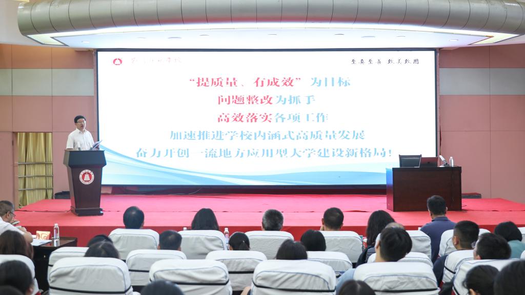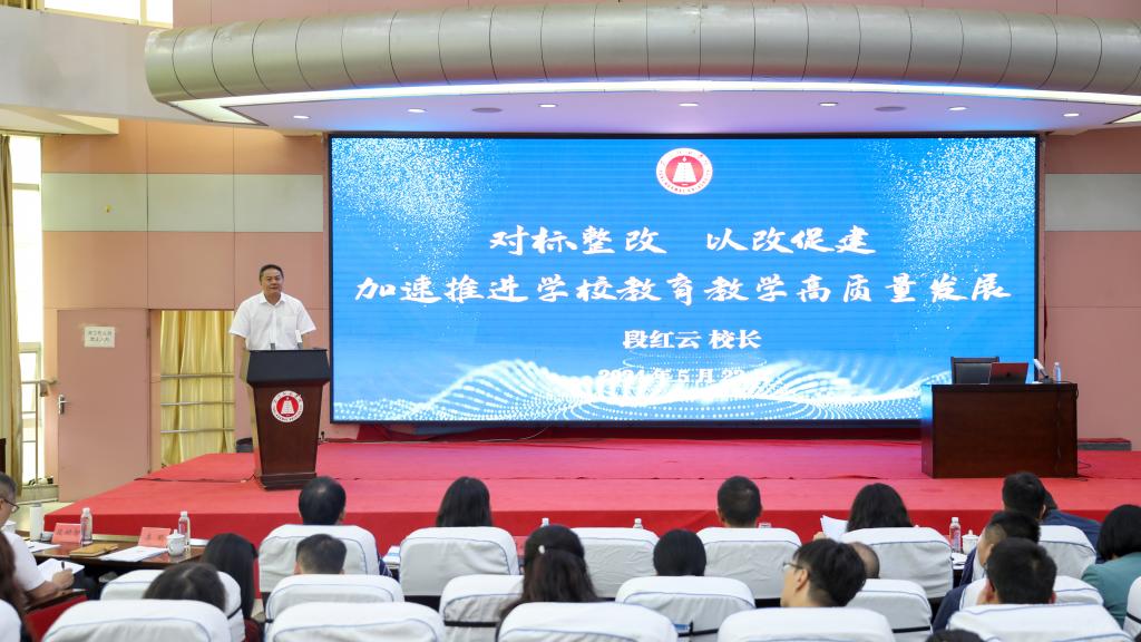 会上,校长段红云作本科教育教学审核评估整改工作动员。段红云指出,2024年是学校“整改提升年”,2025是学校“巩固发展年”,全校上下要充分认识到新一轮审核评估对学校高质量发展带来的深远影响,对标整改,以改促建,加速推进学校教育高质量发展。