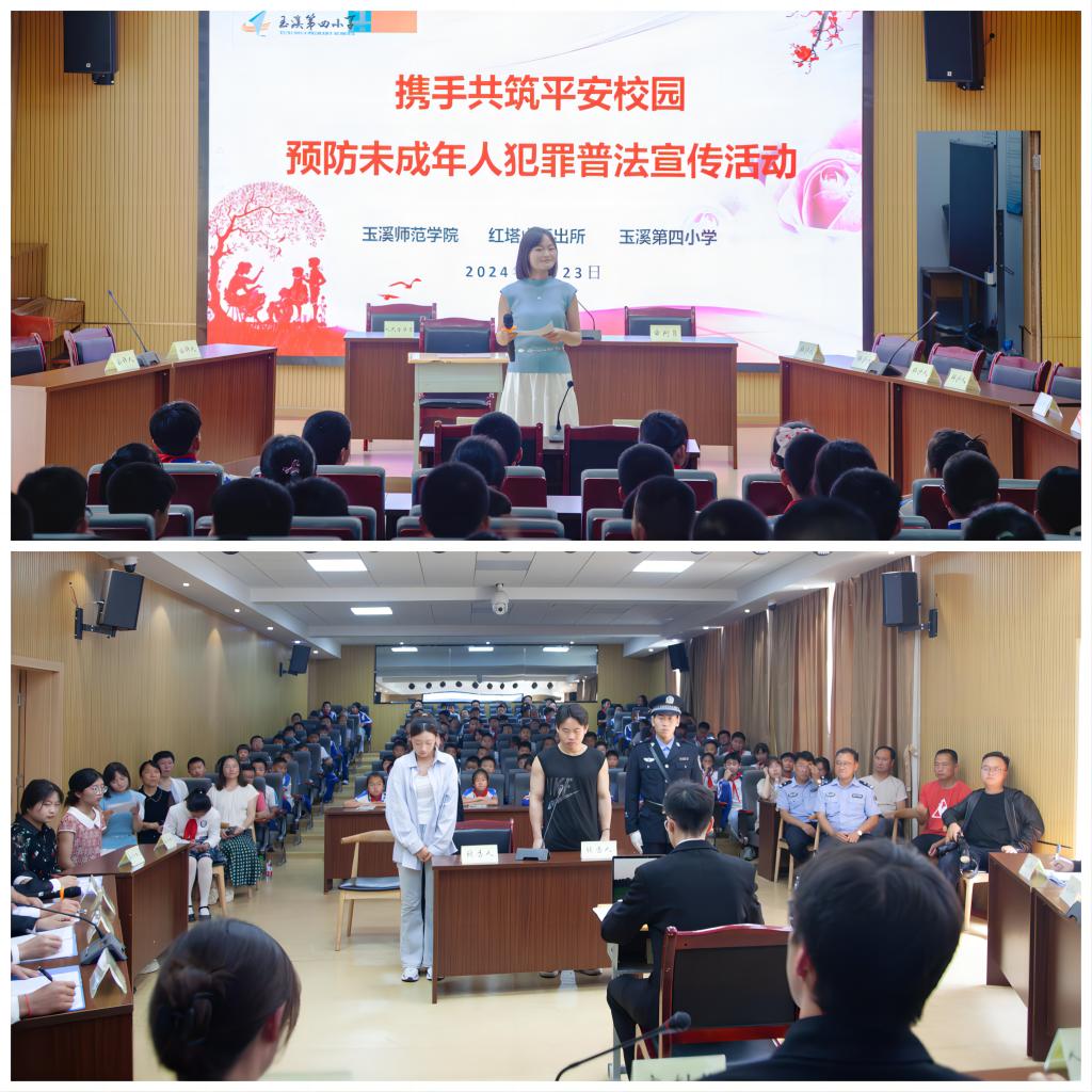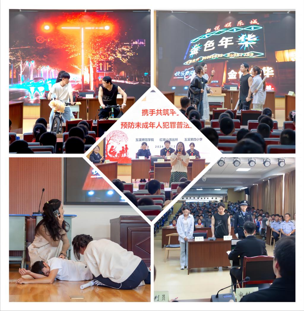 5月23日、24日,玉溪师范学院法学院联合玉溪市公安局红塔分局红塔山派出所、玉溪第八中学、玉溪第四小学共同开展“携手共筑平安校园预防未成年人犯罪”普法宣传暨中国社会工作教育协会成立三十周年纪念活动,协同推进大中小学思想政治教育一体化建设。