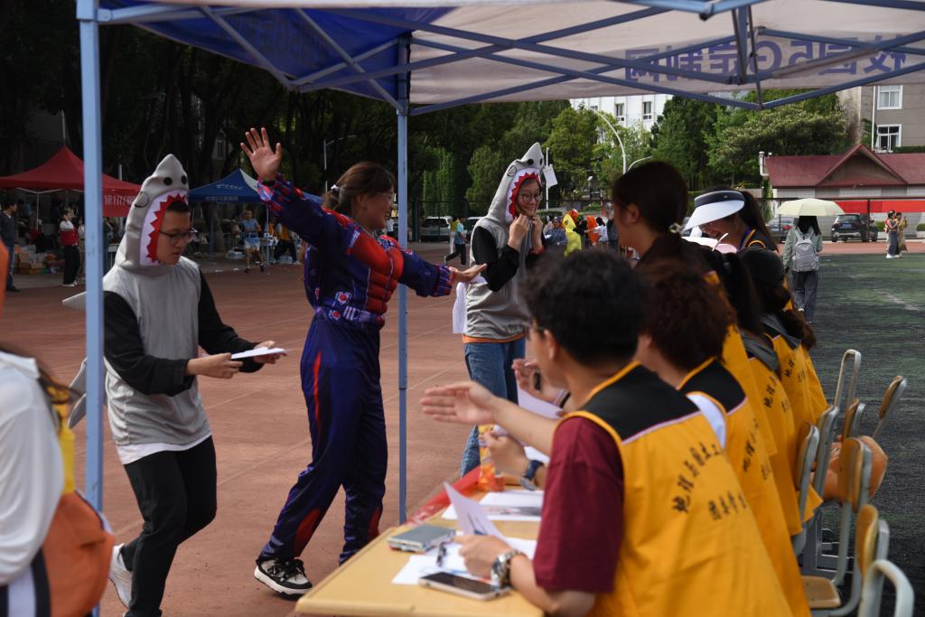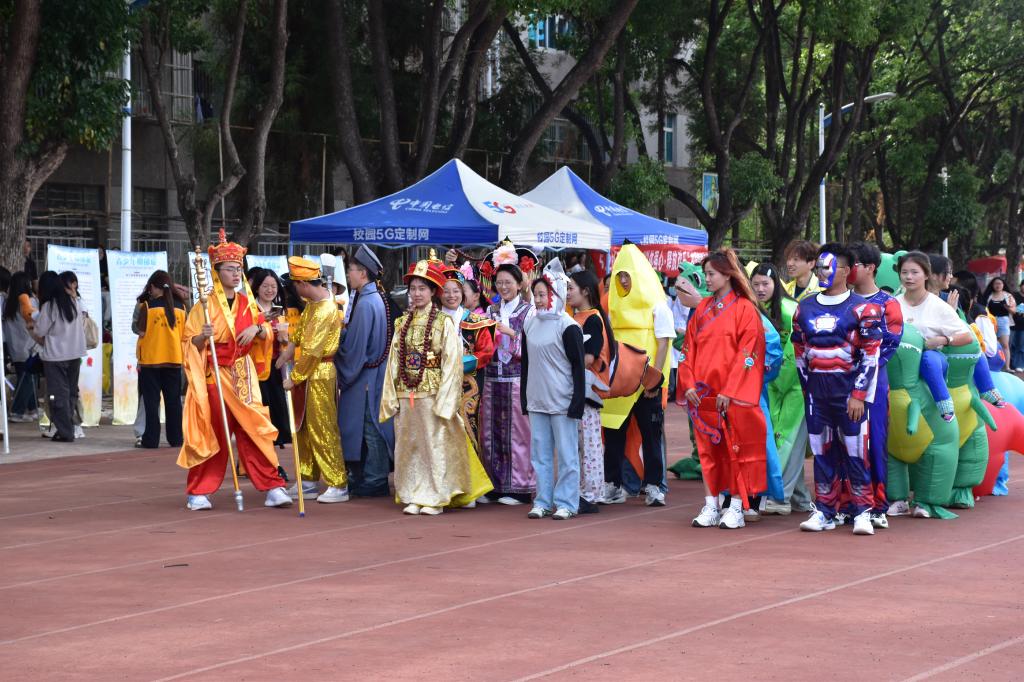 校园创意趣味跑活动过程中,同学们换上各式创意服装,展示各种创意动作、表情惟妙惟肖,现场气氛十分热烈,欢乐不断。大家以穿越喜、欢、笑、乐四个站点为目标,通过创意服装、跨越障碍,在活动中放飞自我、释放压力、感受快乐。