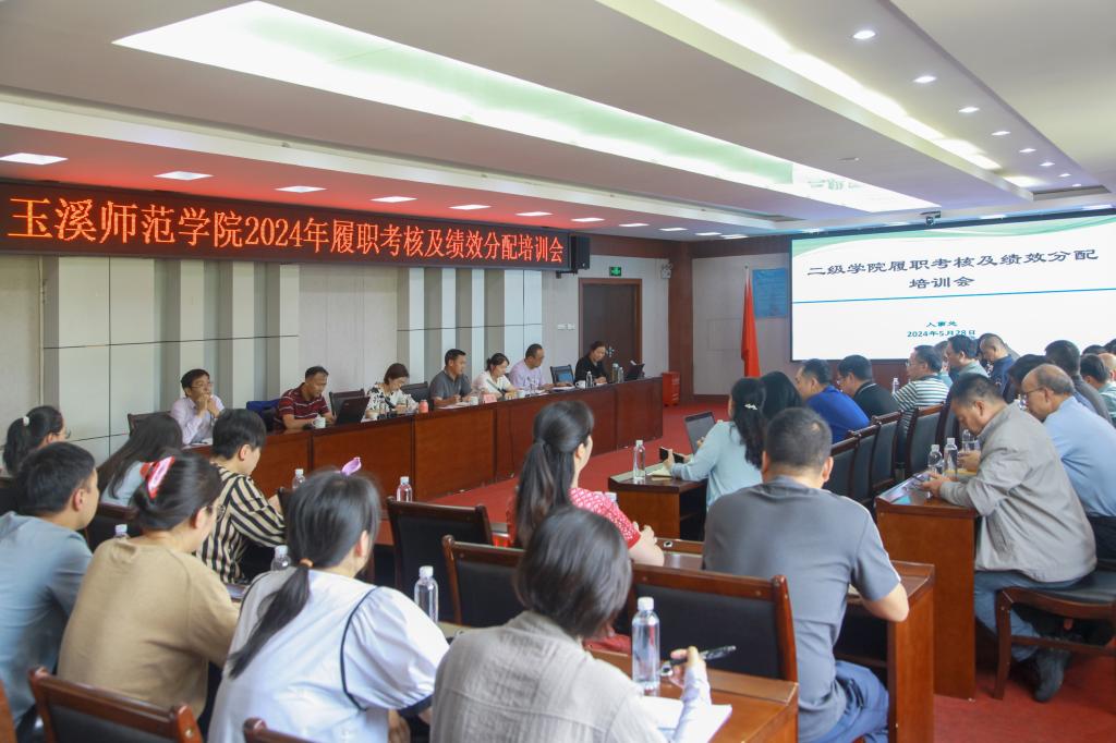 为贯彻落实学校人事制度改革成果,完善各二级学院教职工履职考核及绩效分配实施细则,5月28日下午,玉溪师范学院在图书馆3003会议室召开2024年履职考核及绩效分配培训会。会议由副校长李涛主持,各二级学院院长、书记、经费管理员、教师代表及相关职能部门负责人参加会议。