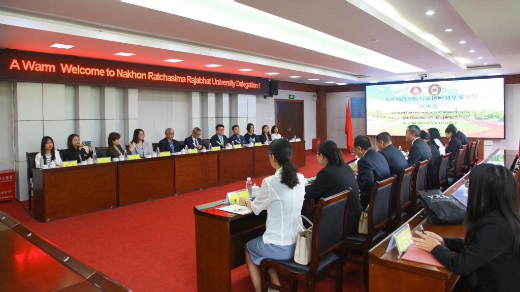 6月3日至4日,泰国呵叻皇家大学校长阿迪索恩·纳瓦农达率领的代表团一行11人到访玉溪师范学院。双方在图书馆3003会议室举行交流座谈。玉溪师范学院校长段红云、副校长李涛出席,对外合作交流处、学校办公室、外国语学院等相关单位负责人参加座谈。会议由李涛主持。