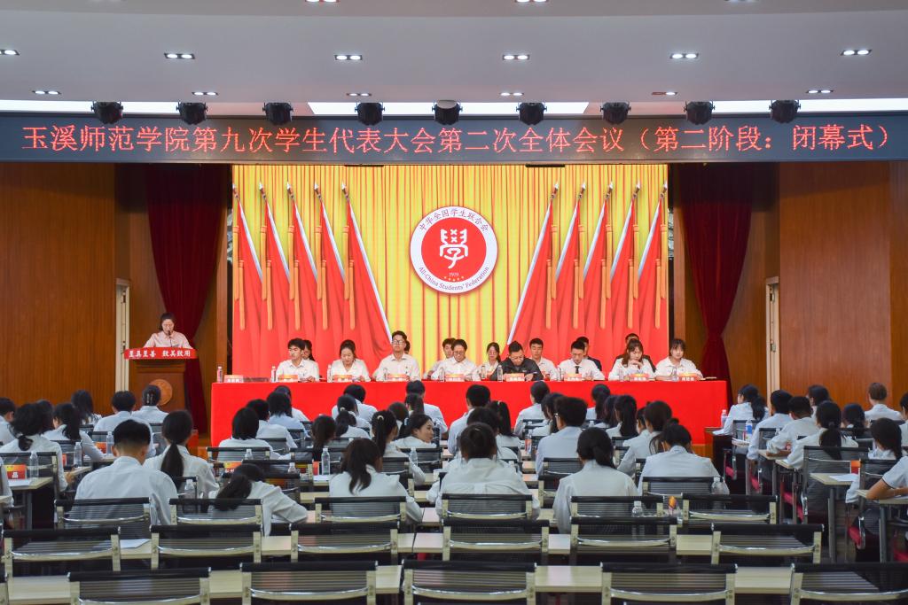 5月31日—6月1日,玉溪师范学院第九次学生代表大会在大学生活动中心学生会堂顺利召开。大会全面贯彻落实党的二十大、党的二十届二中全会精神,认真学习习近平总书记考察云南重要讲话精神,深入学习贯彻团的十九大、团十九届二中全会以及中华全国学联第二十七次代表大会精神,听取并审议了《玉溪师范学院第八届学生会工作报告》《玉溪师范学院第九次学生代表大会提案工作报告》,选举产生了玉溪师范学院新一届学生会委员会委员和学生会主席团成员。