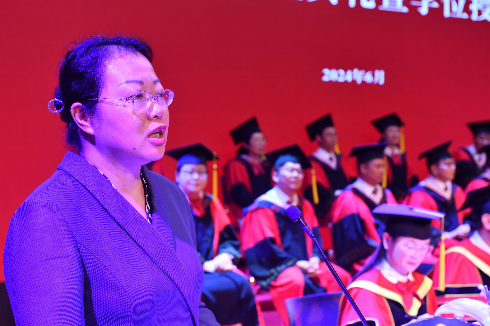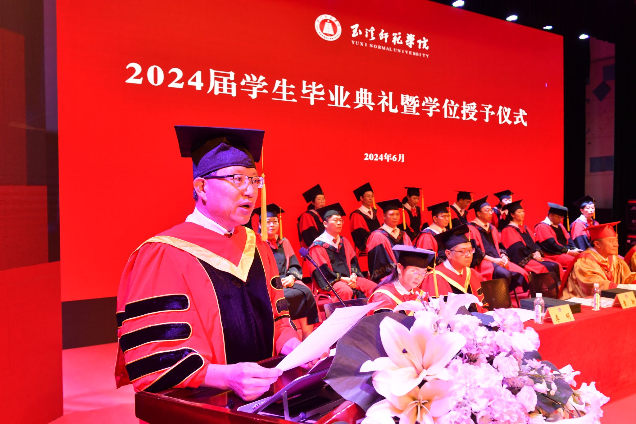 副校长章新宣读《玉溪师范学院2024届毕业生学士学位授予决定》。