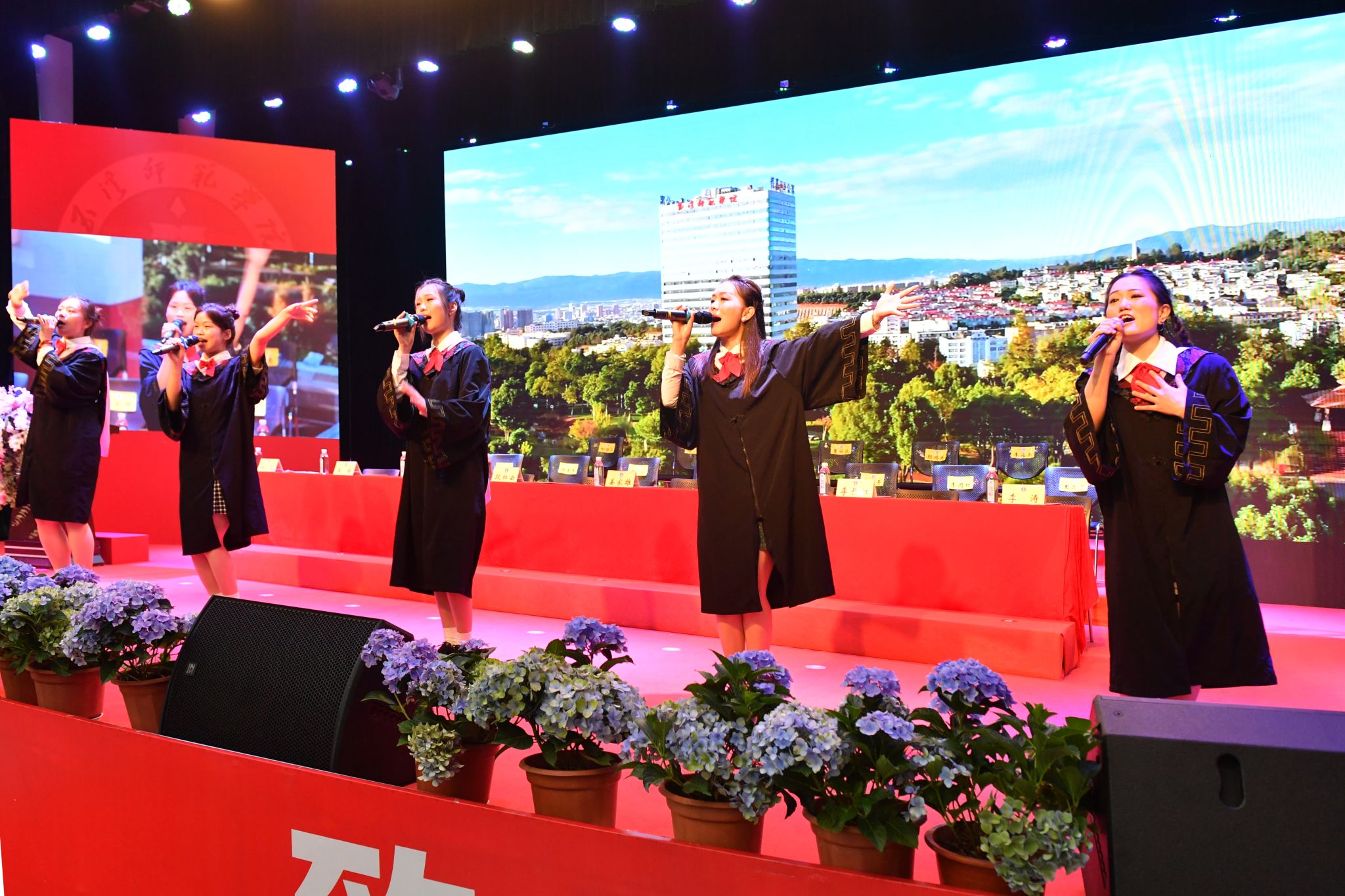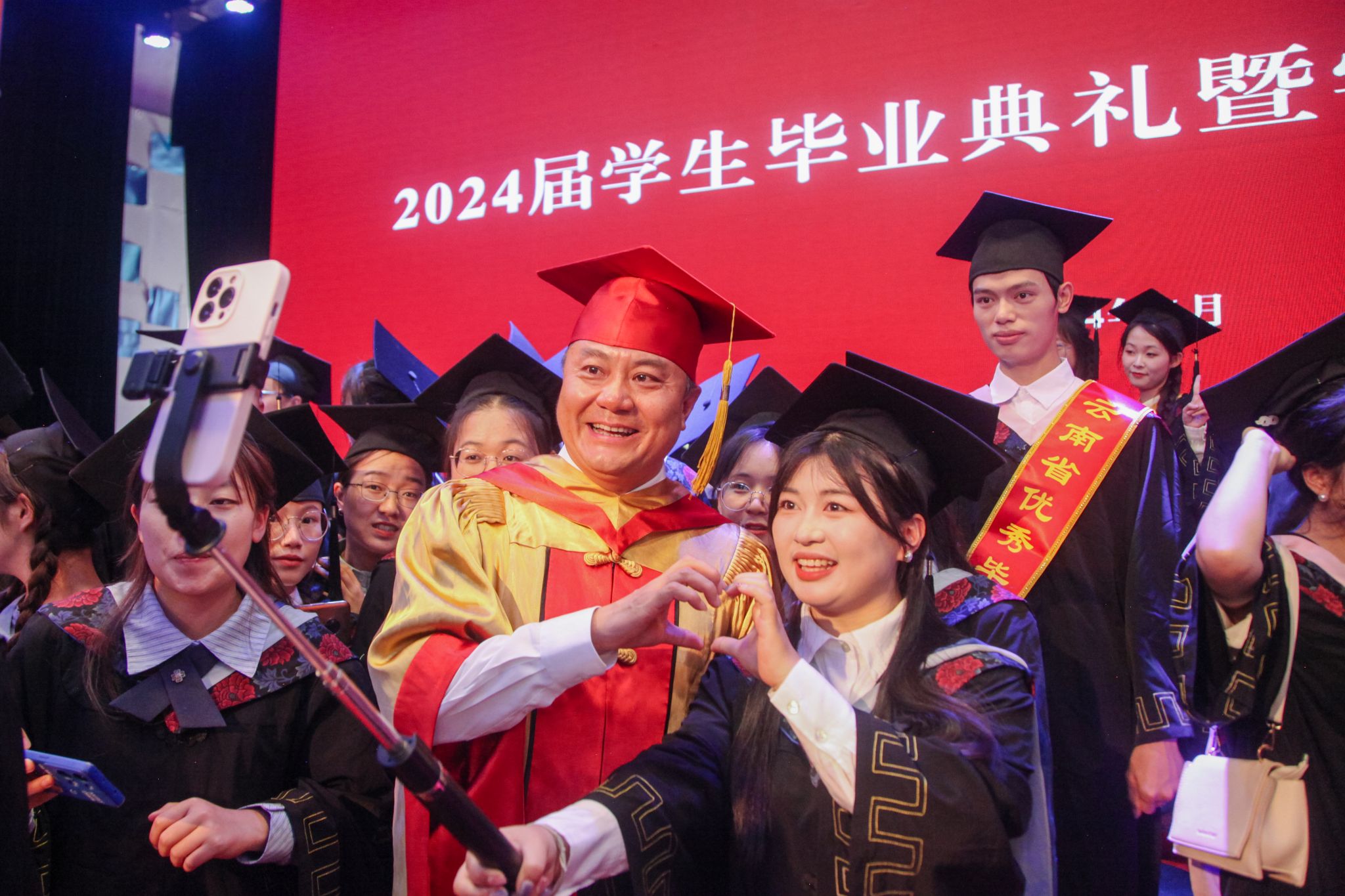 玉溪师范学院2024届学生毕业典礼在全场师生奏唱校歌中圆满落幕。(图/黄凯 董正福)