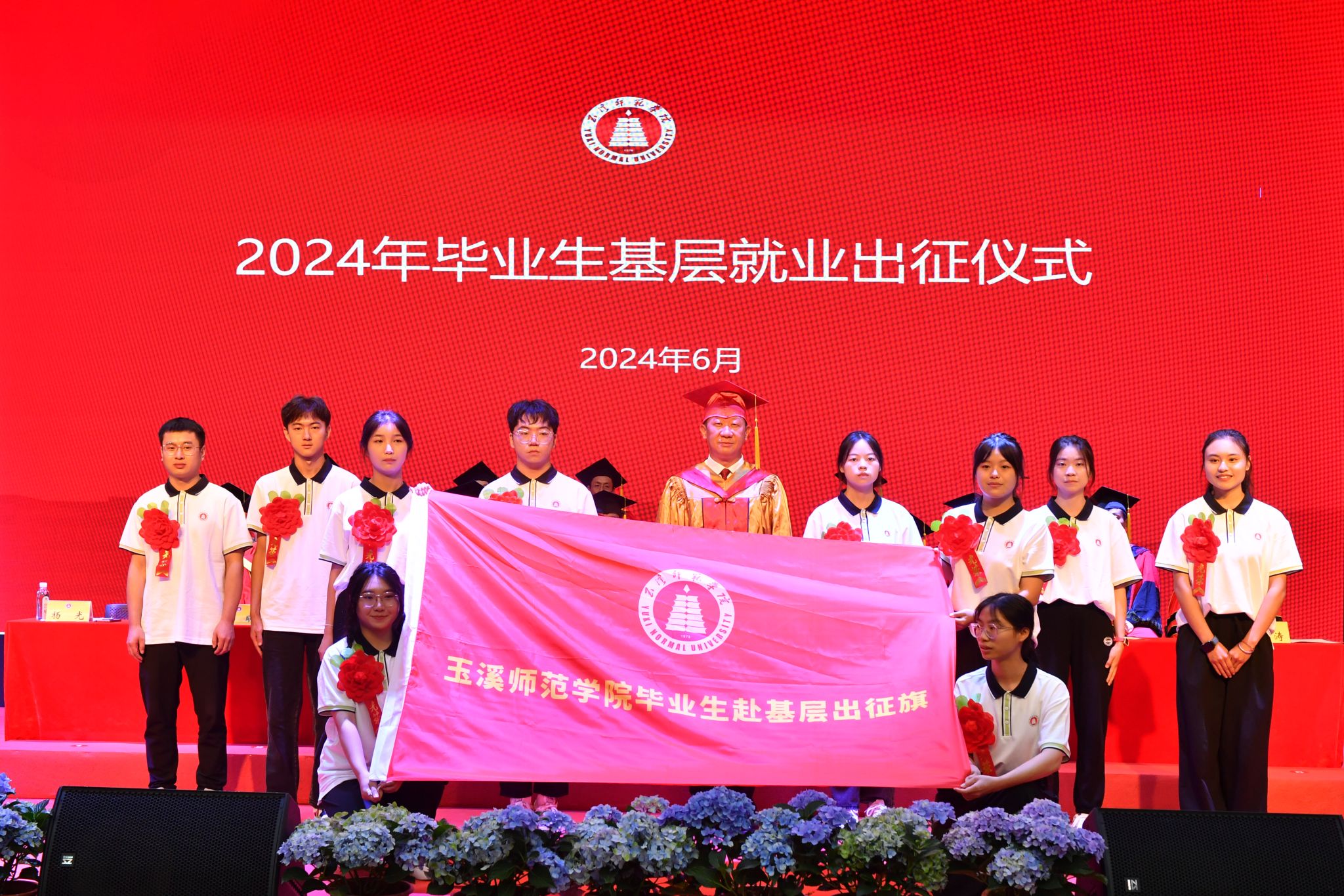 毕业典礼上,还举行了2024年省级优秀毕业生表彰仪式、2024年高校毕业生基层就业出征仪式。校党委书记姜家雄为赴基层就业的毕业生授旗。