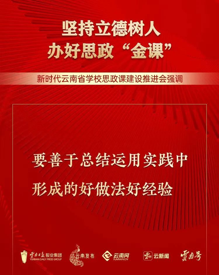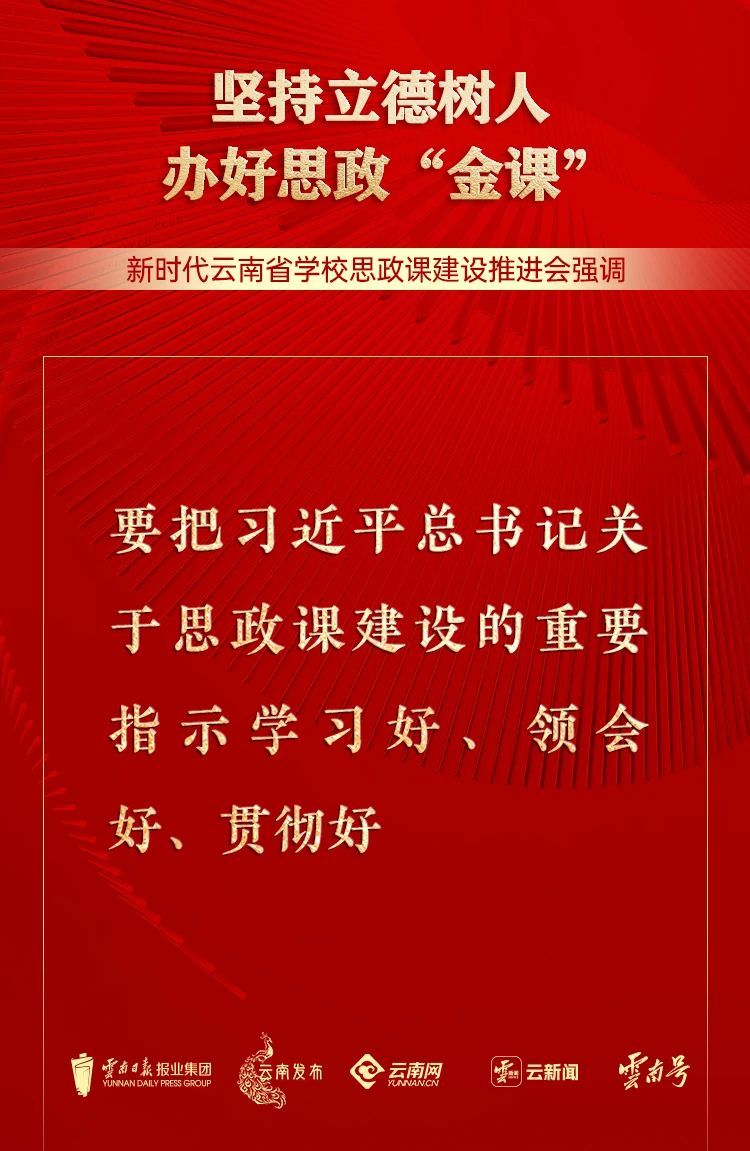 7月10日,新时代云南省学校思政课建设推进会在昆明召开。省委书记王宁在会上指出,云南的未来、云南的发展,归根到底是要靠人才、靠教育;抓教育,最根本的任务是立德树人,最关键的是办好思政课。