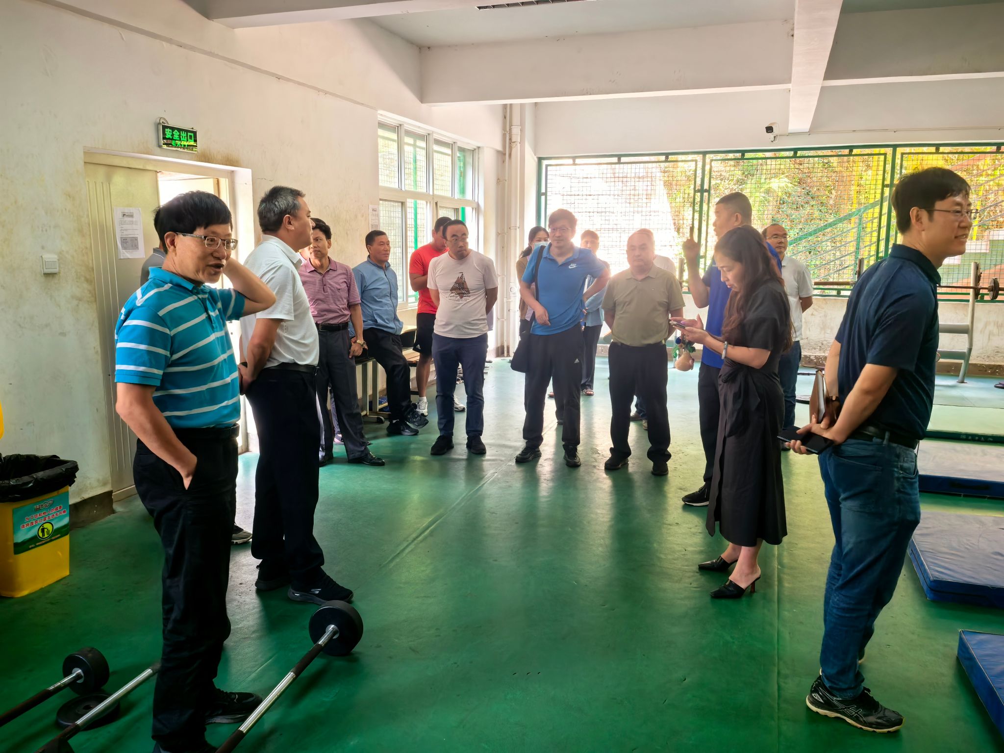 7月12日上午,校党委副书记、校长段红云,副校长章新、杨伟,国有资产管理办公室、教务处、后勤服务中心、资产经营有限公司相关负责人及体育学院相关领导等一行到风雨馆、训练馆考察健身房及智慧体测中心项目建设。
