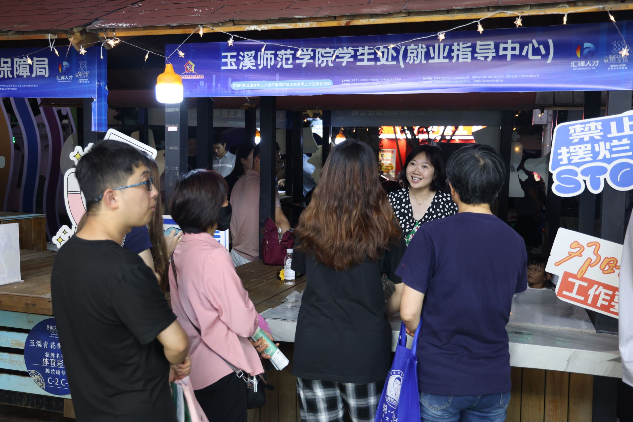 7月12日晚,由玉溪市人力资源和社会保障局、共青团玉溪市委员会主办的2024年玉溪青年人才夜市暨高校毕业生夏季人才交流会在玉溪市红塔区青花街火热开市,玉溪师范学院学生就业指导中心、校团委受邀参加本次活动。