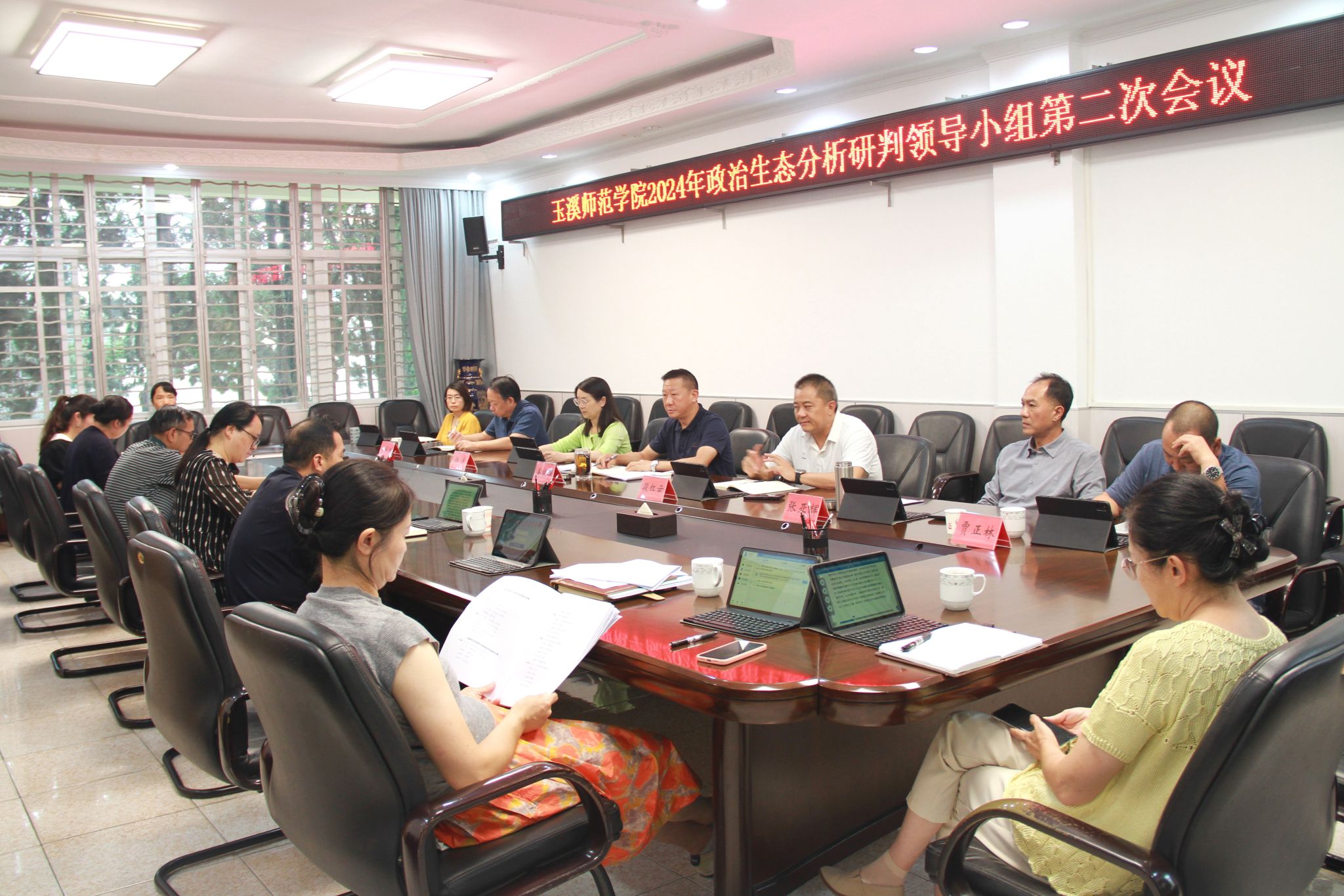 8月29日,玉溪师范学院党委召开2024年政治生态分析研判领导小组第二次会议。校党委书记姜家雄,校党委副书记、校长段红云,校党委副书记杨光、张亚辉,校纪委书记、监察专员李长虹,学校政治生态分析研判领导小组成员单位负责人,纪检处相关人员参加会议。会议由姜家雄主持。