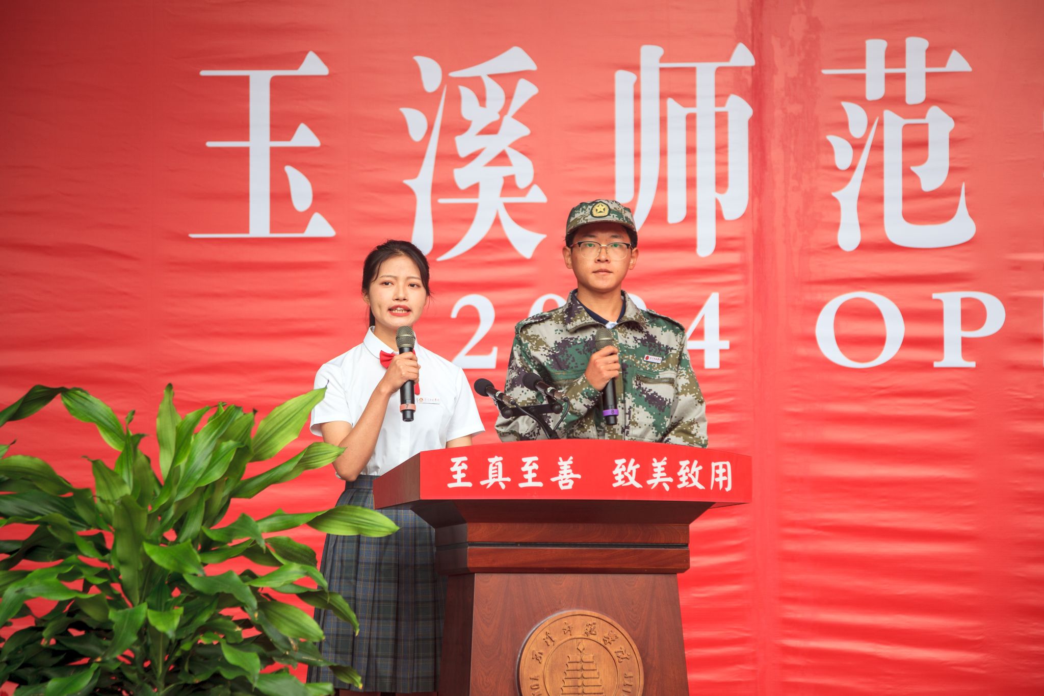 文学院左家林、外国语学院朱组改两位同学作为新生代表发言,分享了自己与玉师结缘的故事,呼吁同学们发扬玉师“至真至善 致美致用”校训精神,在大学生涯中心怀“国之大者”、情系故乡发展、磨练坚强意志、锤炼过硬品格、积蓄成长动力、书写奋斗青春。