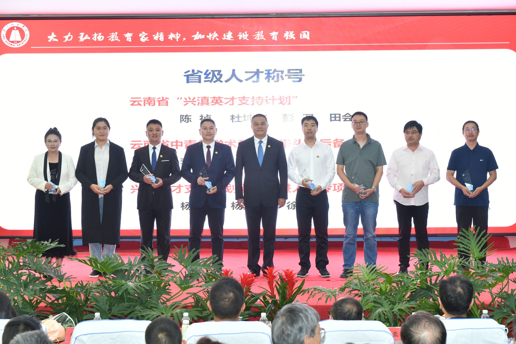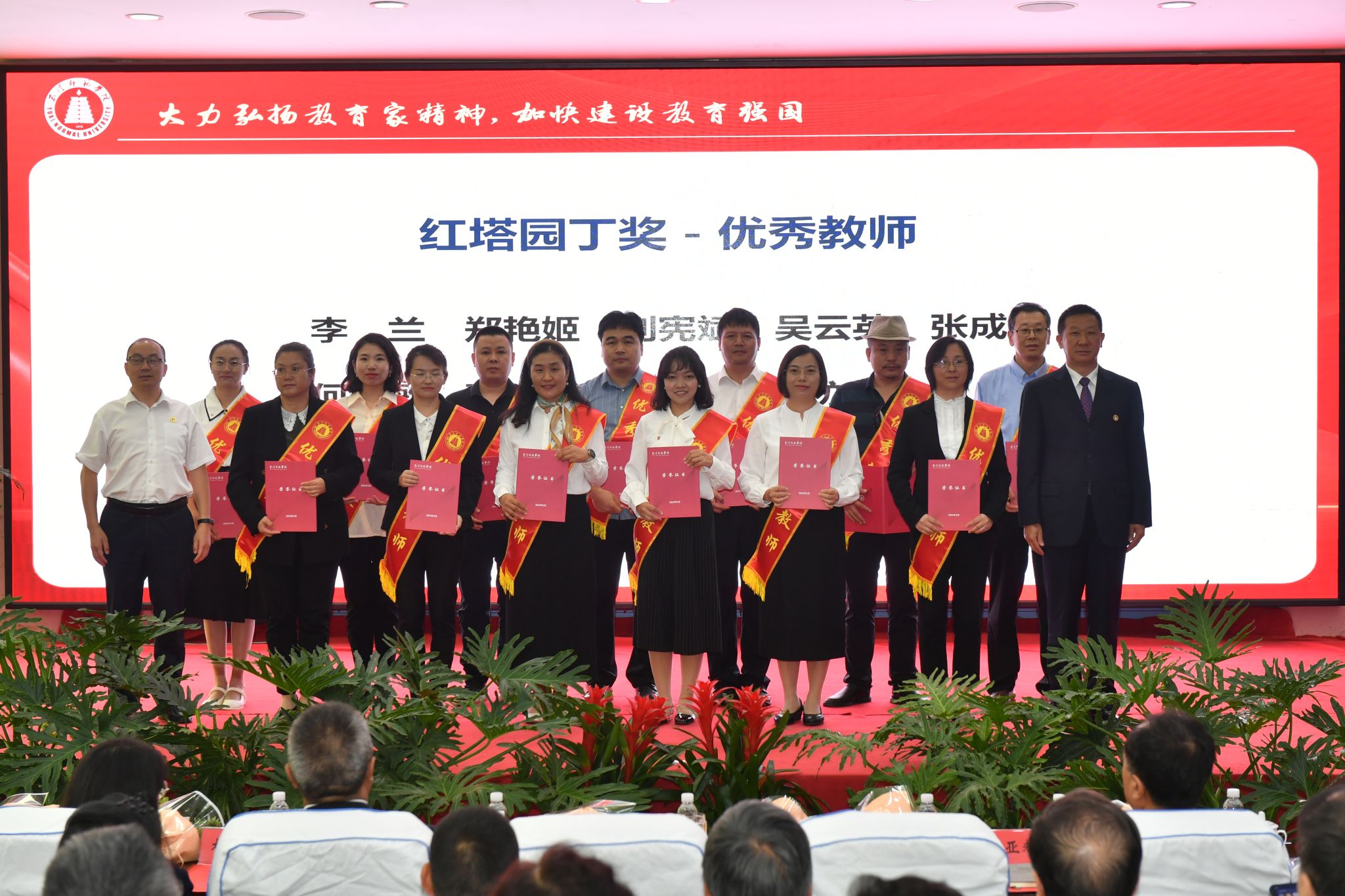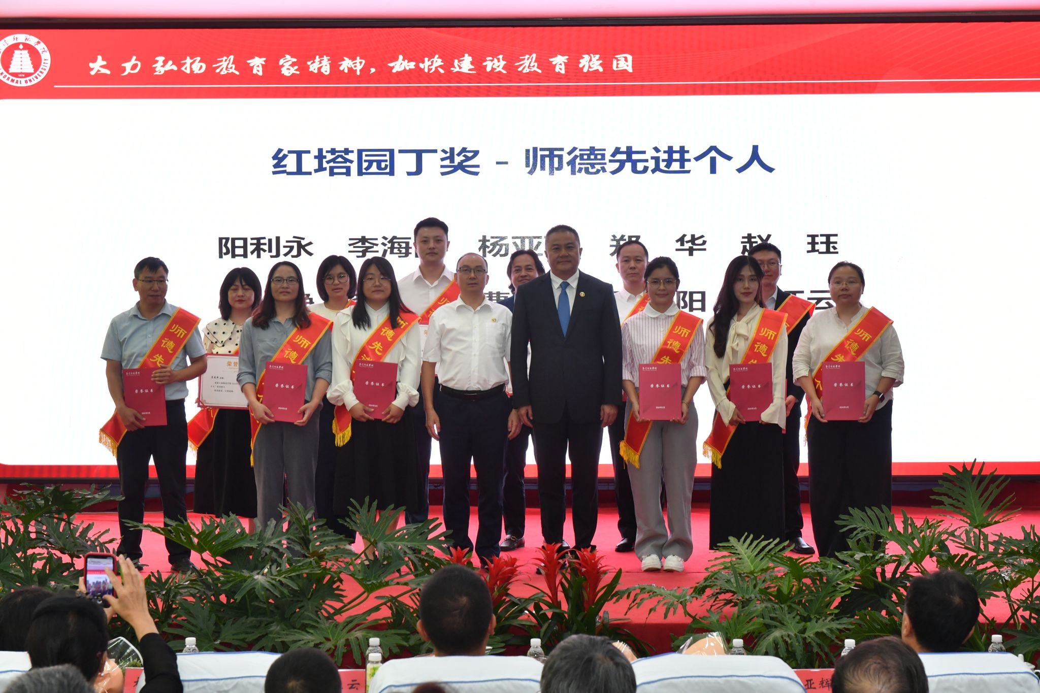 红塔集团党委委员、纪委书记、工会主席左寿文,校长段红云共同为师德先进个人颁奖。