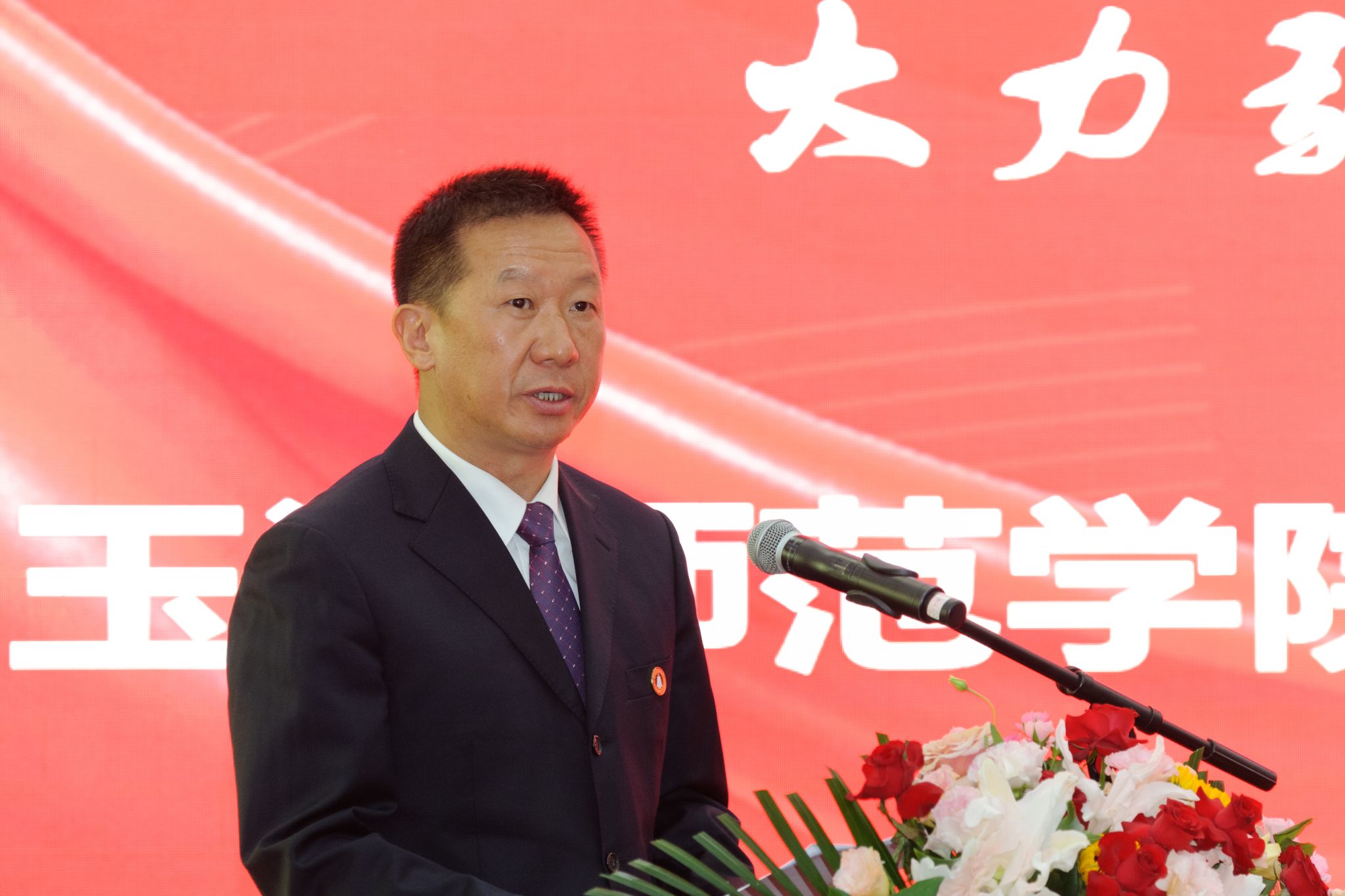 校党委副书记、校长段红云致辞。他指出,一年来,在学校广大师生共同努下,办学层次将实现从本科教育向研究生教育的转段升级,师资队伍结构得到大幅优化,人才培养成绩显著,科研产出成果喜人。学校成绩的取得是全体教职工扎根玉师、躬耕教坛,坚守教育初心、致力教书育人、潜心科学研究的结果。