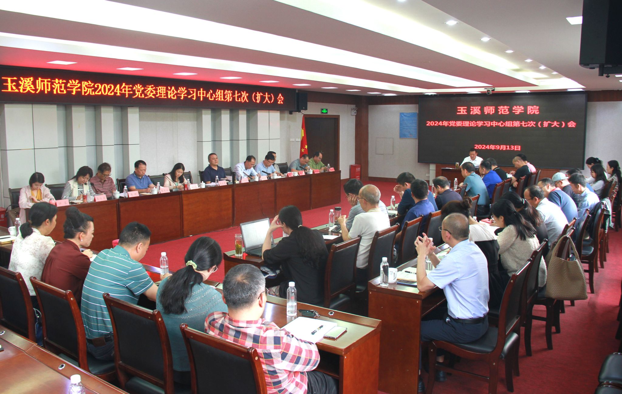 9月13日下午,在会前自学的基础上,玉溪师范学院召开2024年党委理论学习中心组第七次(扩大)会,深入学习党的二十届三中全会精神、习近平法治思想及中国共产党云南省第十一届委员会第六次全体会议精神。会议由校党委书记姜家雄主持。