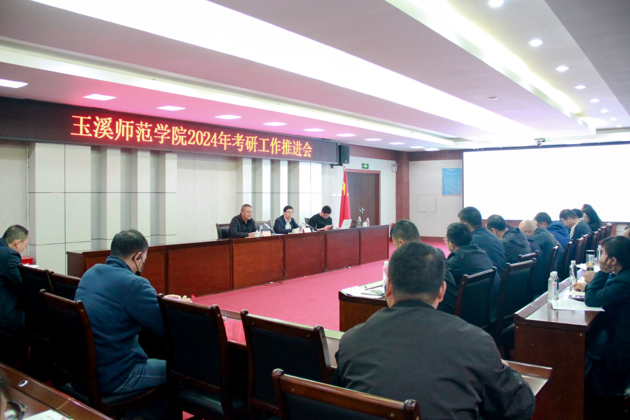 为高效推进考研工作,提高考研备考质量,10月9日,玉溪师范学院在图书馆3003会议室召开2024年考研工作推进会。校长段红云作工作部署,云南海天教育考研辅导专家吴楠作考研报名与备考复习指导,教务处、科学技术处、宣传部、各二级学院等单位负责人参加会议。会议由副校长章新主持。