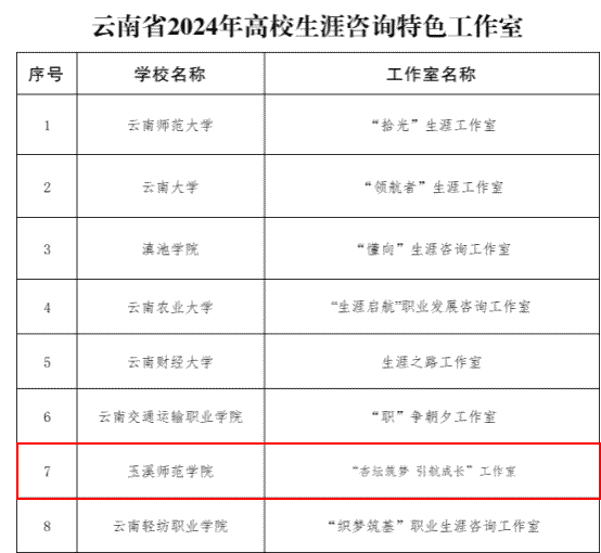 自2024年5月以来,经学校推荐、材料评审、现场说课展示和结果公示等环节,共遴选出云南省2024年高校就业创业指导金课20门、就业指导直播课30节和生涯咨询特色工作室8个。