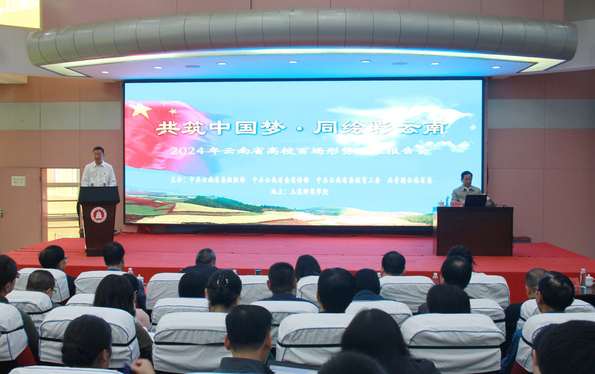 10月16日,玉溪师范学院在图书馆多元学术报告厅举行2024年“共筑中国梦·同绘彩云南”形势政策报告会。云南省社会科学院党组书记、院长,中国(昆明)南亚东南亚研究院党组书记、院长,中共云南省委候补委员、云南省人大代表、中共云南省委宣讲团成员、中国民族学会副会长杨正权受邀作报告。