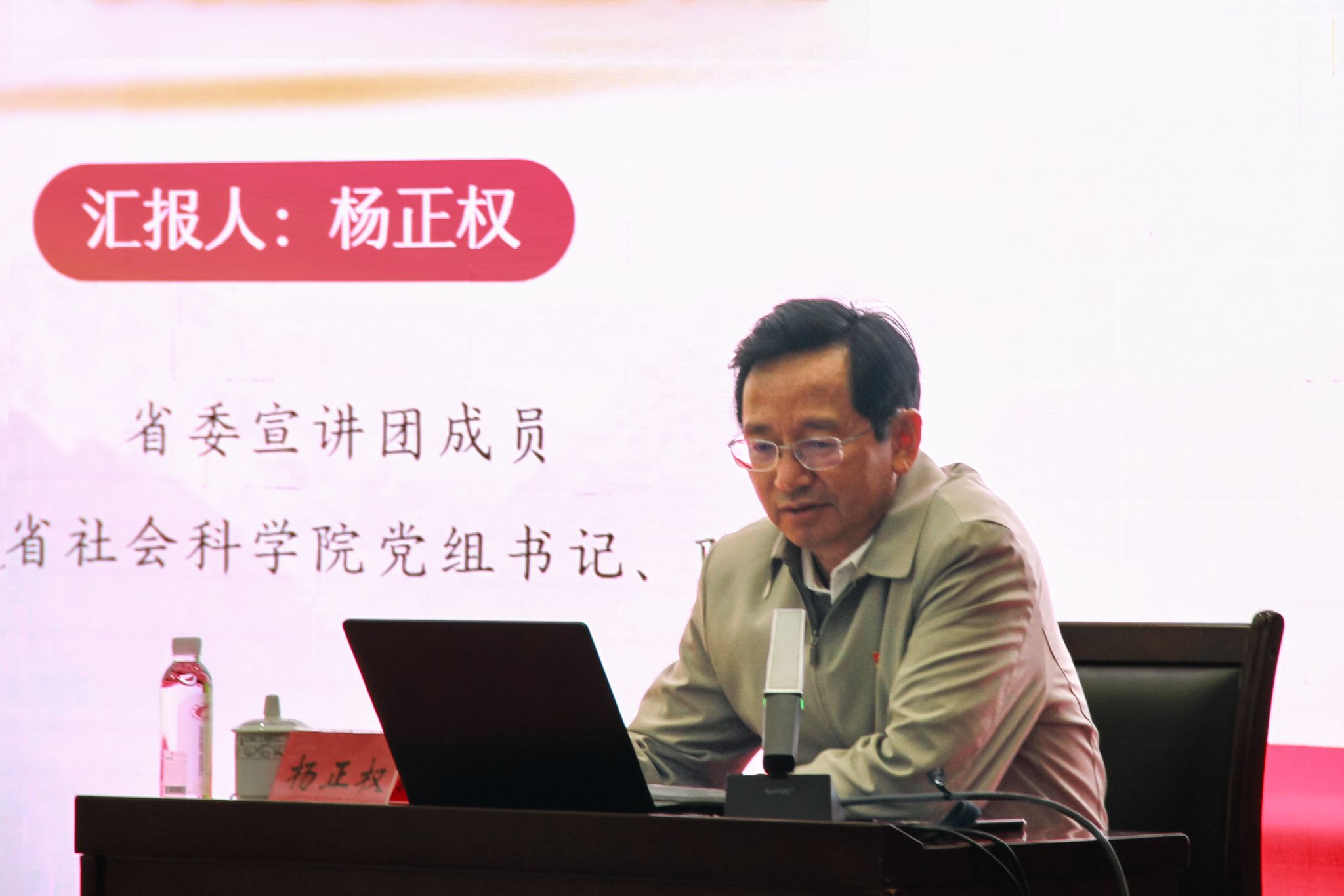 杨正权以“学习贯彻党的二十届三中全会精神 奋力谱写中国式现代化新篇章”为题,围绕党的二十届三中全会召开的历史背景、深入学习领会习近平总书记全会重要讲话精神、全面准确理解进一步全面深化改革重大举措、全力以赴抓好全会精神贯彻落实四个方面,全面深入地阐述了党的二十届三中全会精神,报告理论深厚、内容详实、逻辑严谨,为全校师生进一步深入理解和学习贯彻党的二十届三中全会精神提供了明确的指导。