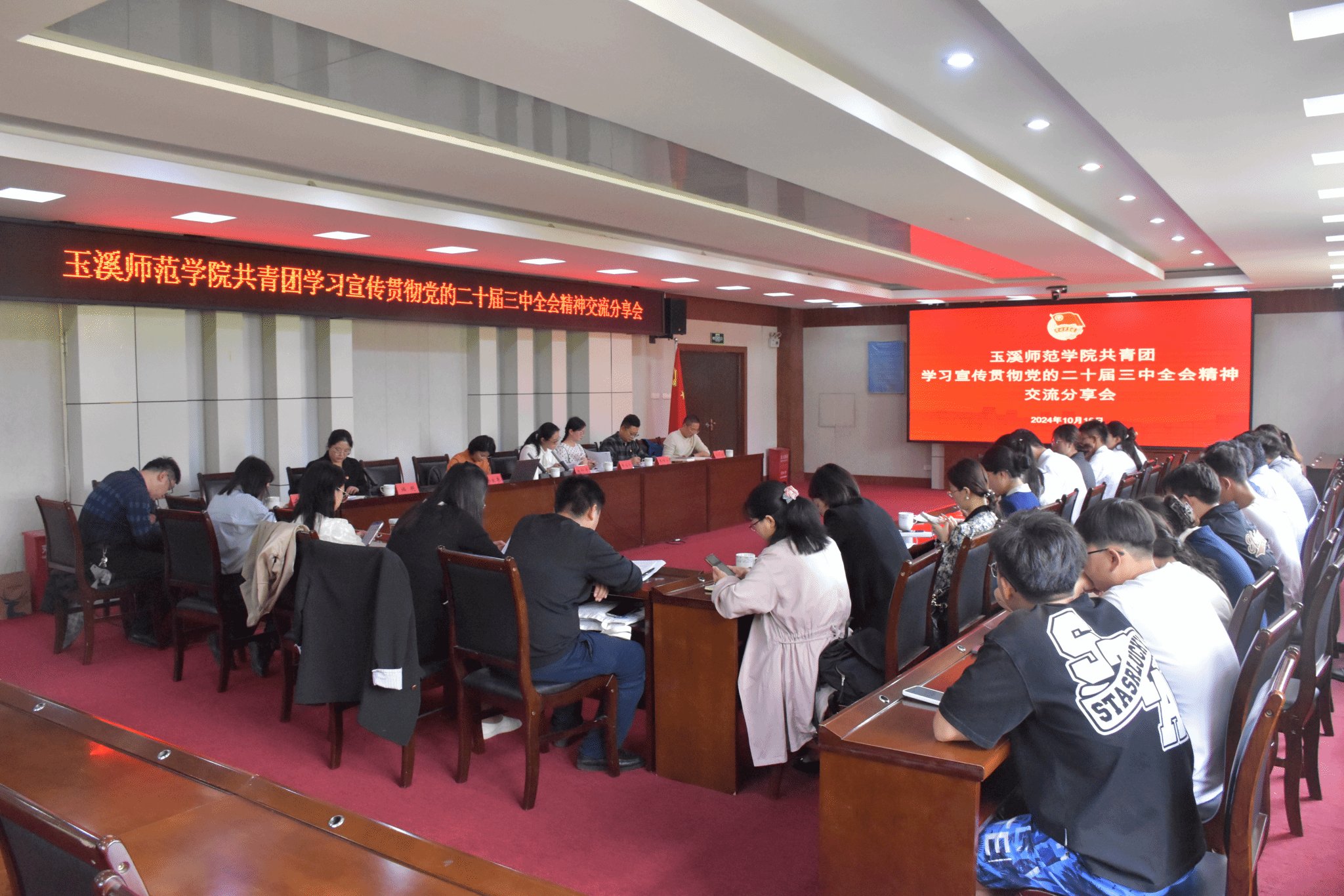 10月16日,玉溪师范学院共青团召开学习宣传贯彻党的二十届三中全会精神交流分享会。玉溪市学生联合会秘书长张继艳,玉溪师范学院团委专职团干、各二级学院团委书记、校院两级学生骨干代表、2024年青马工程校级“菁英班”学员代表共35人参加交流分享。