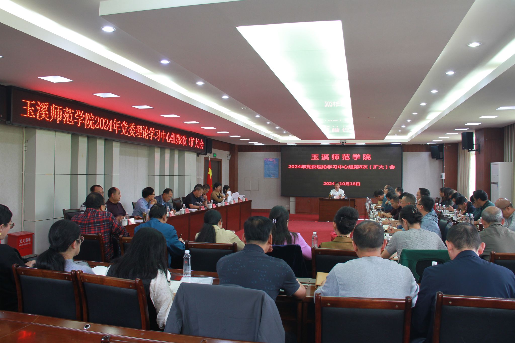 10月18日,玉溪师范学院召开2024年党委理论学习中心组第8次(扩大)会,学习宣传贯彻党的二十届三中全会精神、全国教育大会精神和习近平总书记关于做好新时代党的统一战线工作的重要思想。校党委理论学习中心组全体成员、副校长杨伟、二级党委书记和院长、各部门主要负责人等参加学习,校党委书记姜家雄主持会议。