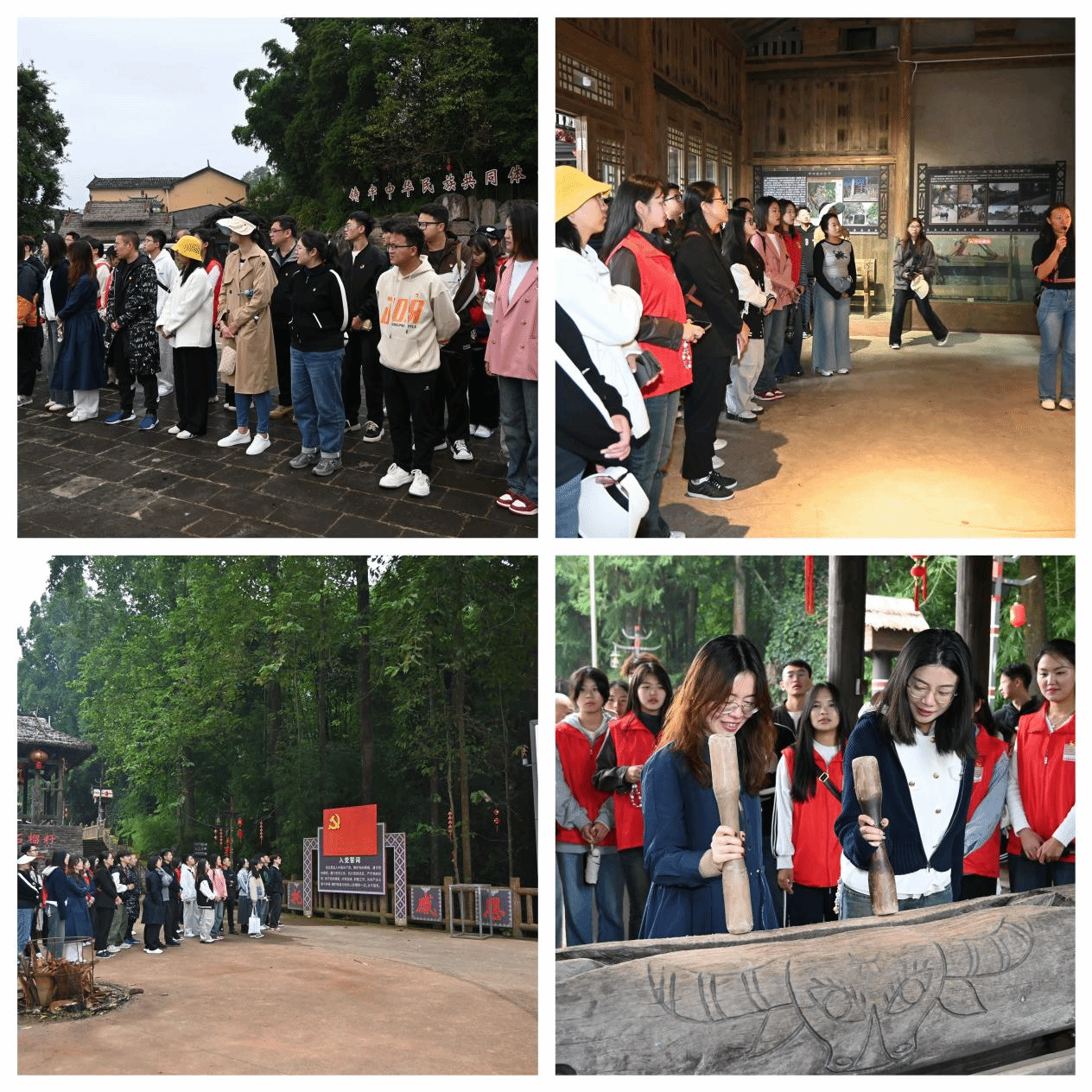 探幸福佤乡,续石榴精神。在司莫拉佤族村,我校师生沿着习近平总书记的足迹,参观了民族文化活动广场、木鼓屋、司莫拉民俗文化陈列馆、脱贫致富的李发顺家、佤族小巷等地,触摸泥瓦土房、了解民风民情,在这个幸福的地方深切感受各民族像石榴籽一样紧紧抱在一起,相互交往交流交融的生动画面,更深入地体悟国家面貌和人民生活所发生的翻天覆地的变化。