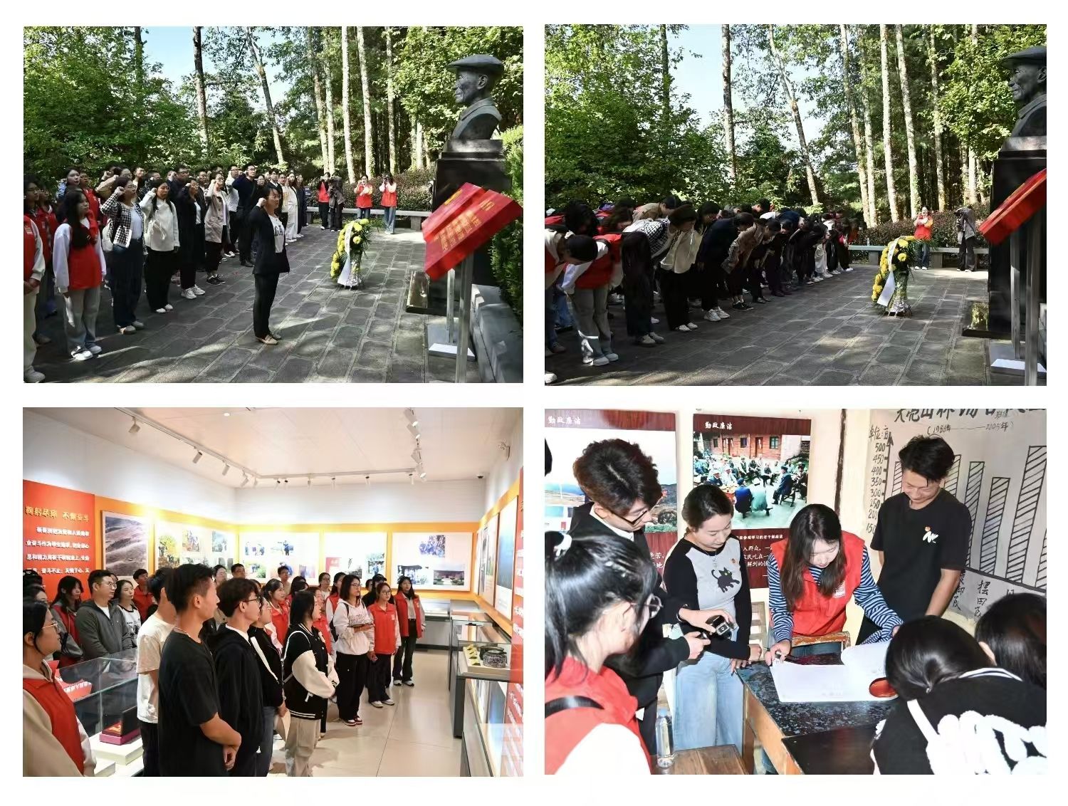 学善洲精神,立报国之志。在施甸县杨善洲林场,师生们驻足杨善洲雕像前,敬献花篮、鞠躬缅怀。老窝棚千疮百孔的油毛毡屋顶、残败不堪的树桩篱笆墙以及杨善洲事迹陈列馆里杨善洲老书记的奖状、奖牌、工作照片和生前使用过的物品,让我校师生深入了解杨善洲清正廉洁、为民奉献的一生,深刻体会老书记“绿了荒山,白了头发,也要造福百姓”的无私奉献精神。