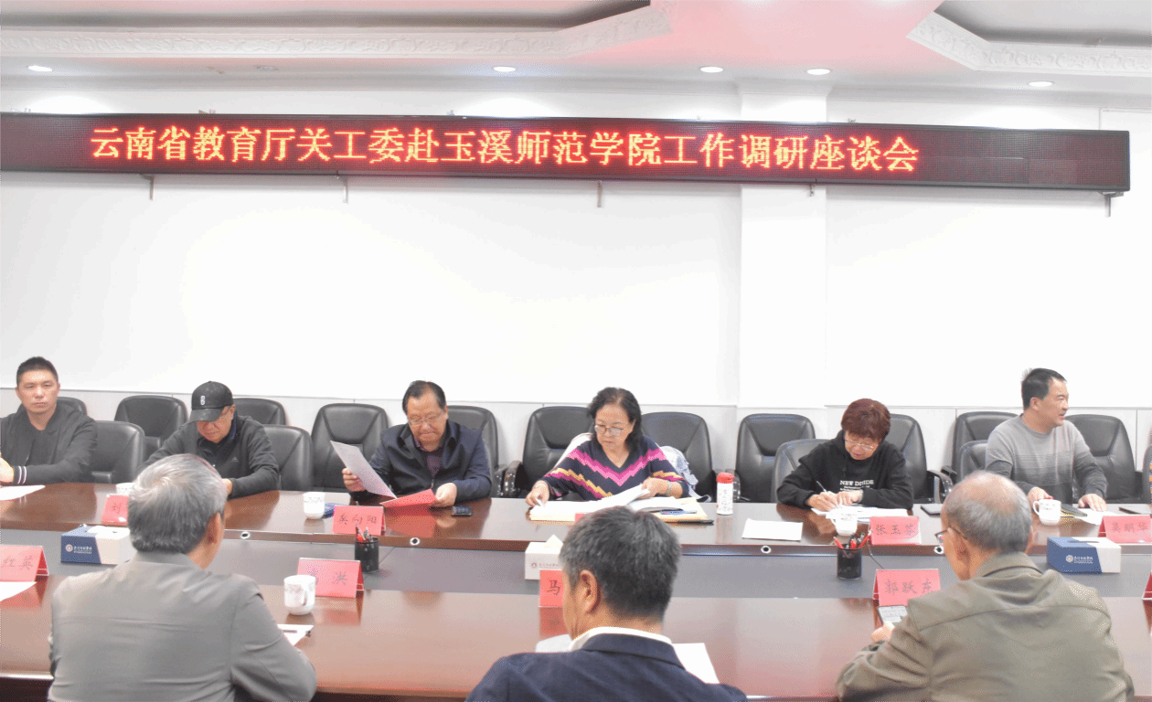 调研组听取了玉溪师范学院关工委组织建设、“五老”作用发挥、教育系统关工委品牌活动开展、“五好”关工委创建、存在的问题以及下一步工作打算等情况的汇报。