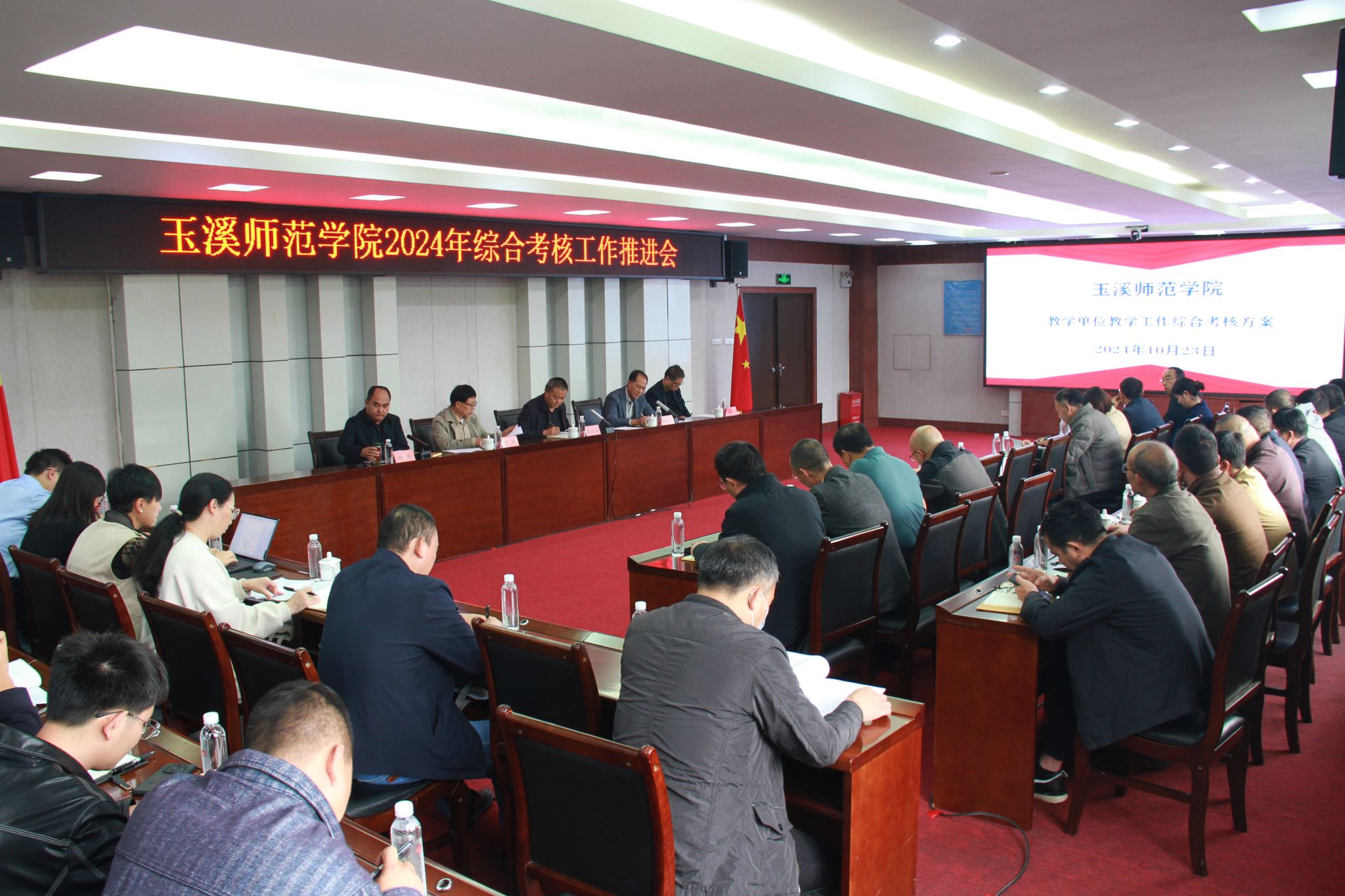 为进一步深化收入分配制度改革,建立综合考核评价机制,全面、客观评价各二级单位的工作业绩,10月23日下午,玉溪师范学院在图书馆3003会议室召开2024年综合考核工作推进会。校长段红云、党委副书记张亚辉,副校长章新、李明、杨伟出席会议,各二级学院党委书记、院长及办公室主任,相关职能部门主要负责人参加会议,会议由杨伟主持。