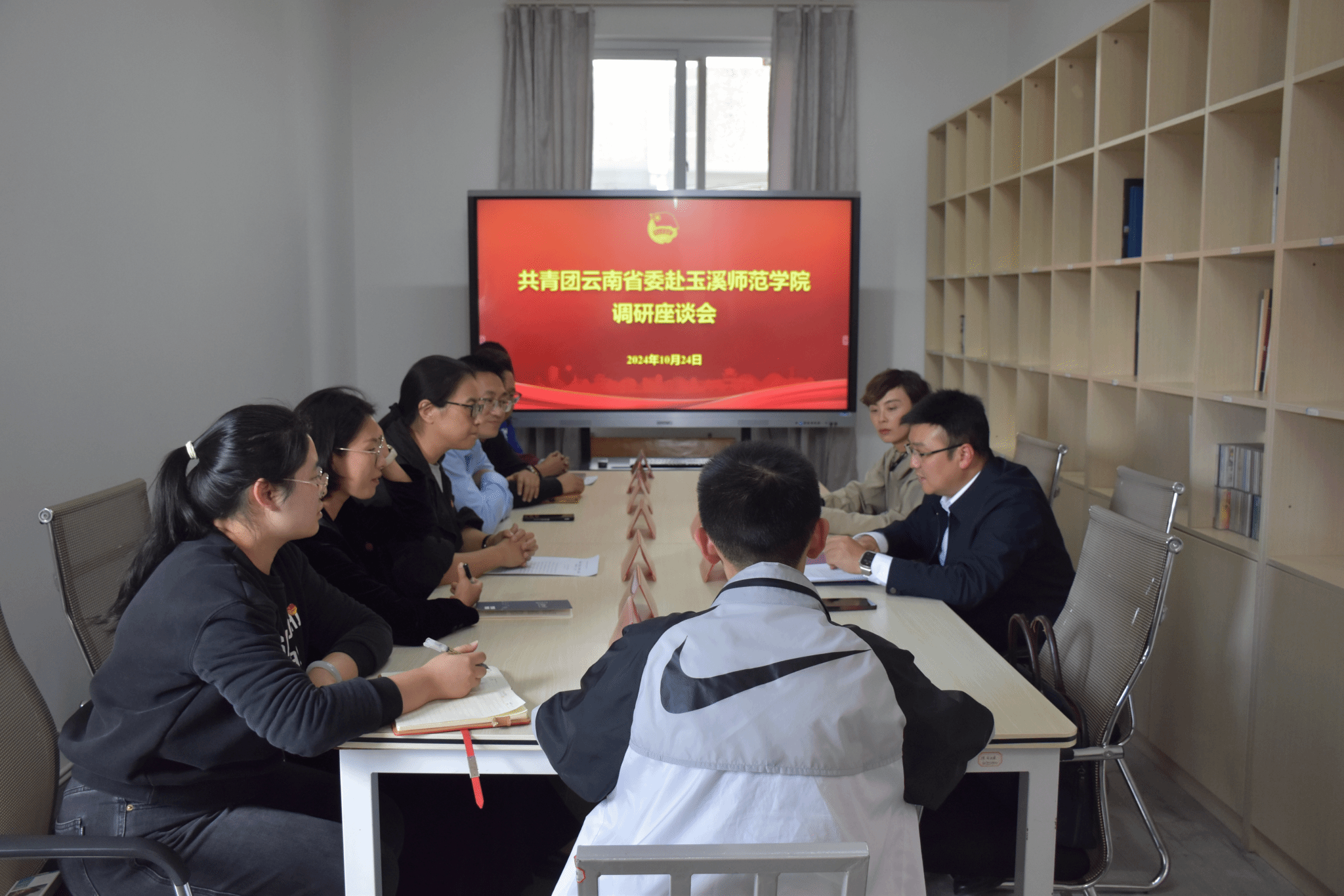 10月24日,共青团云南省委副书记郑茗戈到玉溪师范学院调研指导共青团工作。共青团云南省委志联部,玉溪师范学院团委、马克思主义学院有关负责同志等参加调研。