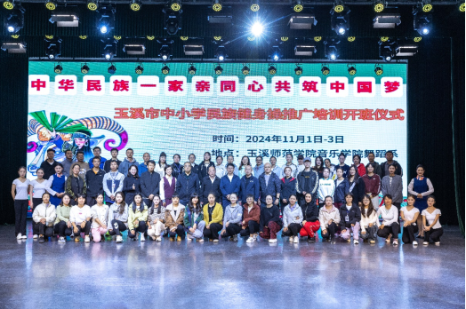 为全面贯彻党的二十大精神和党的教育方针,推动铸牢中华民族共同体意识,为建设教育强国做出更大贡献,11月2日,玉溪市中小学民族健身操教练员培训开班仪式暨《以哈尼族健身操进校园构筑中华民族共有精神家园》项目启动仪式在玉溪师范学院实训剧场举行。