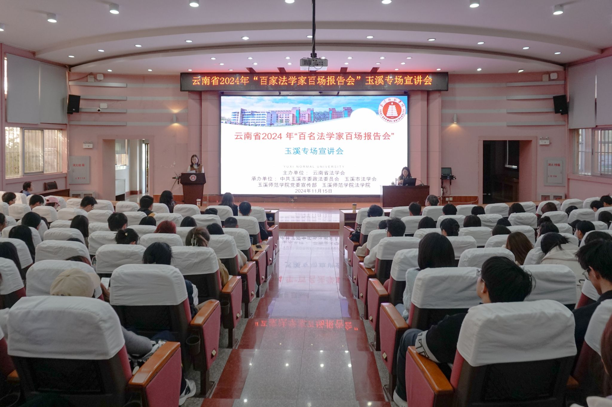 11月15日,云南省2024年“百名法学家百场报告会”玉溪专场宣讲会在玉溪师范学院科学讲堂举行。报告会邀请了中共云南省委党校副教授、研究生导师,云南省人大立法咨询专家、云岭大讲堂法学主讲人、云南“八五”普法宣讲团成员刘俊芳律师作专题辅导。